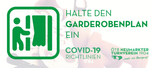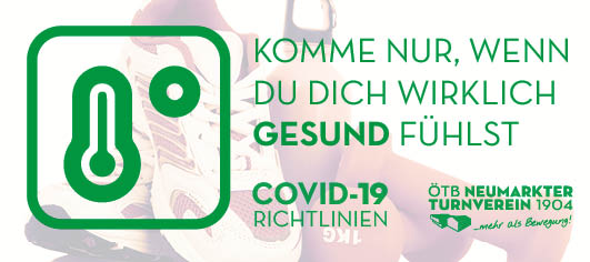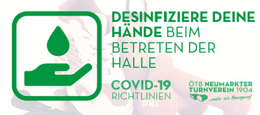 Covid-19-Maßnahmen im Turnerheim Die geltenden Covid-19-Maßnahmen beeinflussen auch den Turnbetrieb. Wenn wir alle diese Maßnahmen befolgen, können wir unsere Turnstunden in beinahe gewohnter Form abhalten! Wir achten aufeinander!