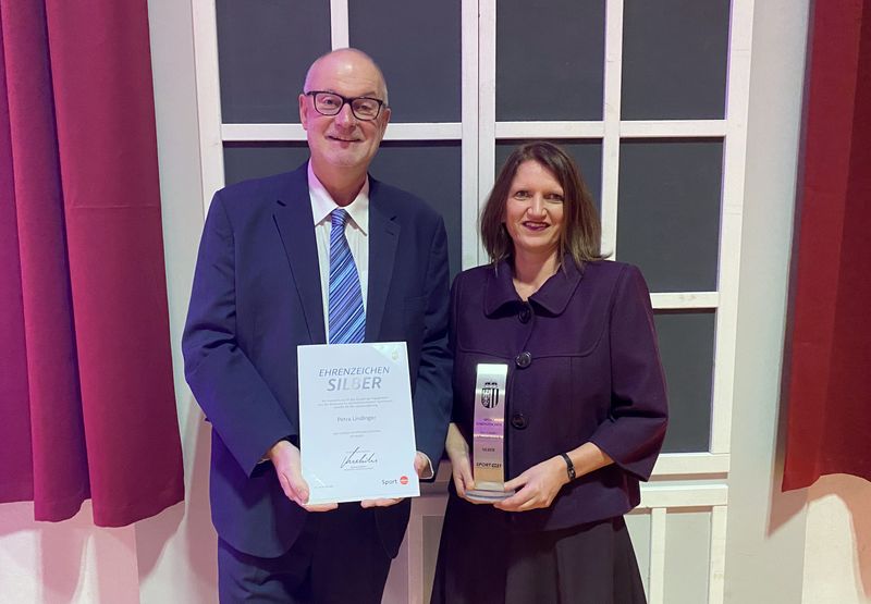 In Vertretung des Landessportreferenten Markus Achleitner überreichte ASVOÖ-Vizepräs. Kons. Gerald Stutz das Landessportehrenzeichen in Silber an Frau Petra LINDINGER vom ÖTB Neumarkter Turnverein 1904 bei der Neumarkter Ballnacht 2023.