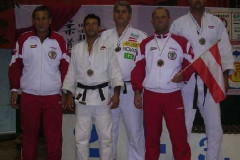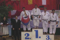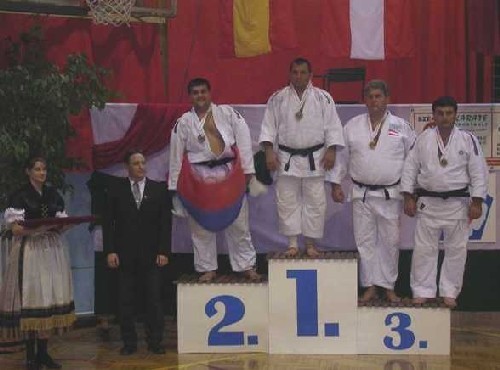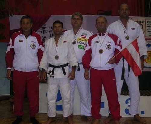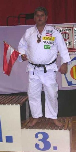 Bronzemedaille – Helmut Gföllner, Austria – so hieß es vor einigen Tagen im ungarischen Kecskemet, ca. 70 Kilometer südlich von Budapet. Unser Judo-Abteilungsleiter konnte diese Medaille erstmals nach Hause bringen, wurden diese Europameisterschaften ja zum ersten Male ausgetragen. Wie schon Monate zuvor bei den Weltmeisterschaften in Tokio waren auch hier wieder hunderte erfahrene Judokas über 30 Jahre alt aus vielen Nationen am Start. Naturgemäß war die Anzahl der Ostsportler viel höher. Helmut verbrachte diese Tage in Ungarn wieder gemeinsam mit seinem Freund, Coach und Obmann des ÖTB Neumarkter Turnvereines Gerald Stutz. Außerdem hatte er die Unterstützung seiner Sponsoren, an der Spitze Alfred Zechmeister, der sich die spannenden Kämpfe nicht entgehen ließ. Eigene, ungarische Autogrammkarten sorgten natürlich für viel Aufregung. Den entscheidenden Kampf verlor Helmut wieder gegen einen Judoka aus dem Osten, diesmal einen Ungarn. Wenn auch eine bessere Platzierung geplant gewesen wäre, so war er am Ende doch froh: “Ich glaube, bei einer Europa- und einer Weltmeisterschaft im selben Jahr drei Medaillen zu erzielen und das nach der schweren Verletzung von der vorjährigen Weltmeisterschaft, da kann man nur stolz und froh sein, dass heuer nichts passiert ist“, so Obmann und Coach Gerald Stutz.