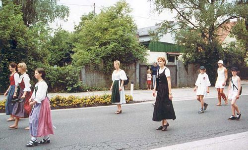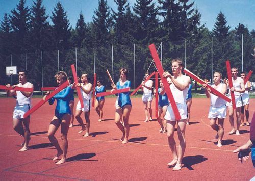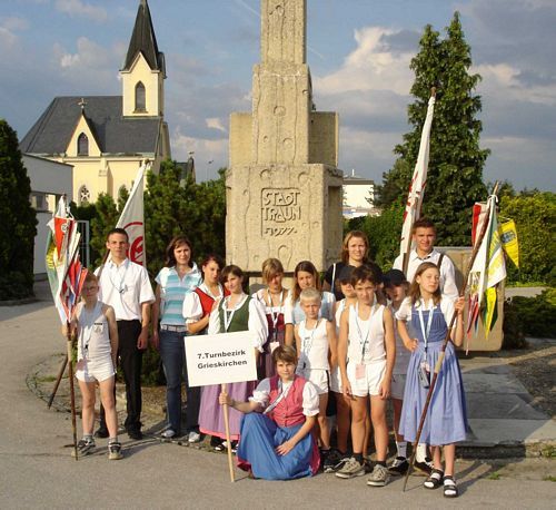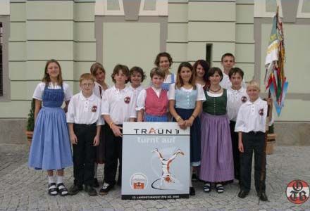 Mit der Jugend ging es am DIENSTAG Abend los, und als Betreuer fuhren Florian, Petra, Doris und Michael mit. In Traun empfing uns strahlender Sonnenschein und wir bezogen unser Quartier in der Volksschule St. Dionysen, wo wir uns von Anfang an sehr wohl fühlten. Am MITTWOCH, nach einemausgezeichneten Frühstück, gingen die Wettkämpfe los. Mit der Leichtathletik im Stadion wurde begonnen, und nach einem guten Essen, welches im Bundesschulzentrum ausgespeist wurde, stand Turnen am Programm. Nach dem Abendessen war die offizielle Eröffnung des Turnfestes am Hauptplatz, und den Abend konnte sich die Jugend frei gestalten. Am DONNERSTAG in der Früh war der Rätsellauf und gegen Mittag war das Schwimmen im Hallenbad, wo eine Bombenstimmung herrschte. Mit Putenbruststreifen oder Kaiserschmarren gestärkt trat die Jugend zu ihrem letzten Bewerb des Mannschaftswettkampfes, und zwar zum Singen und Tanzen im Schloss Traun an. Abends vor der Feierstunde der Jugend bzw. dem Volkstanzfest, begann unsere Vereinswimpelwettstreit-Mannschaft ihren Wettkampf mit Singen und Tanzen Die Jugend unterstützte sie mit viel Applaus. Am FREITAG nahm die Jugend am Völkerballturnier teil, und am Nachmittag konnte sie bei der jugendlichen Erlebniswelt neue Sportarten ausprobieren und kennen lernen. Die Erwachsenen begannen bereits um 8.00 Uhr mit dem Turnen im Bundesschulzentrum, anschließend ging es ins Stadion, wo die Festgymnastik bewertet wurde, und die leichtathletischen Bewerbe durchgeführt wurden. Hier herrschte tolle Stimmung, und unsere Mannschaft war beim Staffellauf „Spitze“. Der Höhepunkt aber war der Schwimmbewerb im Hallenbad Ödt. Ein Schwimmen auf der Luftmatratze stand auf dem Programm. Die Vertreter des Schwimmclubs Traun, die diese Schwimmwettkämpfe ausrichteten, hatten so eine Stimmung bei einem Schwimmbewerb noch nie erlebt. Hier konnte man wirklich sagen die Halle „bebte“. Unsere Mannschaft kämpfte sich nach anfänglichen Schwierigkeiten nach vorne und erreichte noch die drittbeste Zeit. Abends, nach erfolgreichem Abschluss der Wettkämpfe, gingen wir gemeinsam zum Schauturnen in die Sporthalle, von welchem wir alle begeistert waren. Als wir die Sporthalle verlassen wollten, empfing uns ein fürchterliches Gewitter und wir mussten noch einige Zeit ausharren bis wir zurück zu unserem Quartier gehen konnten. Der Abend war aber noch nicht zu Ende sondern jetzt begann der gemütliche Teil, und zwar spielten im Festzelt unsere „Oritschinel Goatnzauns“ auf. Sie sorgten für eine Bombenstimmung. Leider hieß es am SAMSTAG wieder früh aufstehen, denn die Vereinswettturner hatten ihren Wettkampf. Am Vorabend wurde entschieden, dass es Schlechtwetterprogramm gibt, und so hatten wir noch genügend Zeit um vorher zu üben, denn an diesem Tag waren endlich einmal alle Teilnehmer anwesend. Gemeinsam fuhren wir zur Hauptschule Traun, wo unsere Stärkeklasse eingeteilt war. Unsere Jugend fuhr als Fanclub mit, denn sie wollten auch einmal sehen, wie so ein Vereinswettturnen abläuft. Der Wettkampf begann mit Lied und Spruch und anschließend musste die Festgymnastik gezeigt werden. Das „Aufwärmen“ entfiel in der Halle, und so war anschließend sofort das „Turnen am Gerät“. Dies hieß beiden Frauen an den Langbänken turnen, und die Männer zeigten ihr Können beim Kastenspringen. Dabei erreichten unsere Frauen die „Traumnote 20“, das ist die höchste Punkteanzahl die hier vergeben werden konnte. Nun war es endgültig mit den Wettkämpfen vorbei, und zu Mittag gab es Wiener Schnitzel, die allen schmeckten. Nachmittag marschierten wir beim Festzug mit, und um 18.00 Uhr war die Schlussfeier mit Siegerehrung wiederum in der Sporthalle. Bei den ersten Siegen waren wir nicht dabei, aber zweite und dritte Plätze erreichten wir bei den Mannschaften und wir waren zufrieden mit unseren Leistungen.