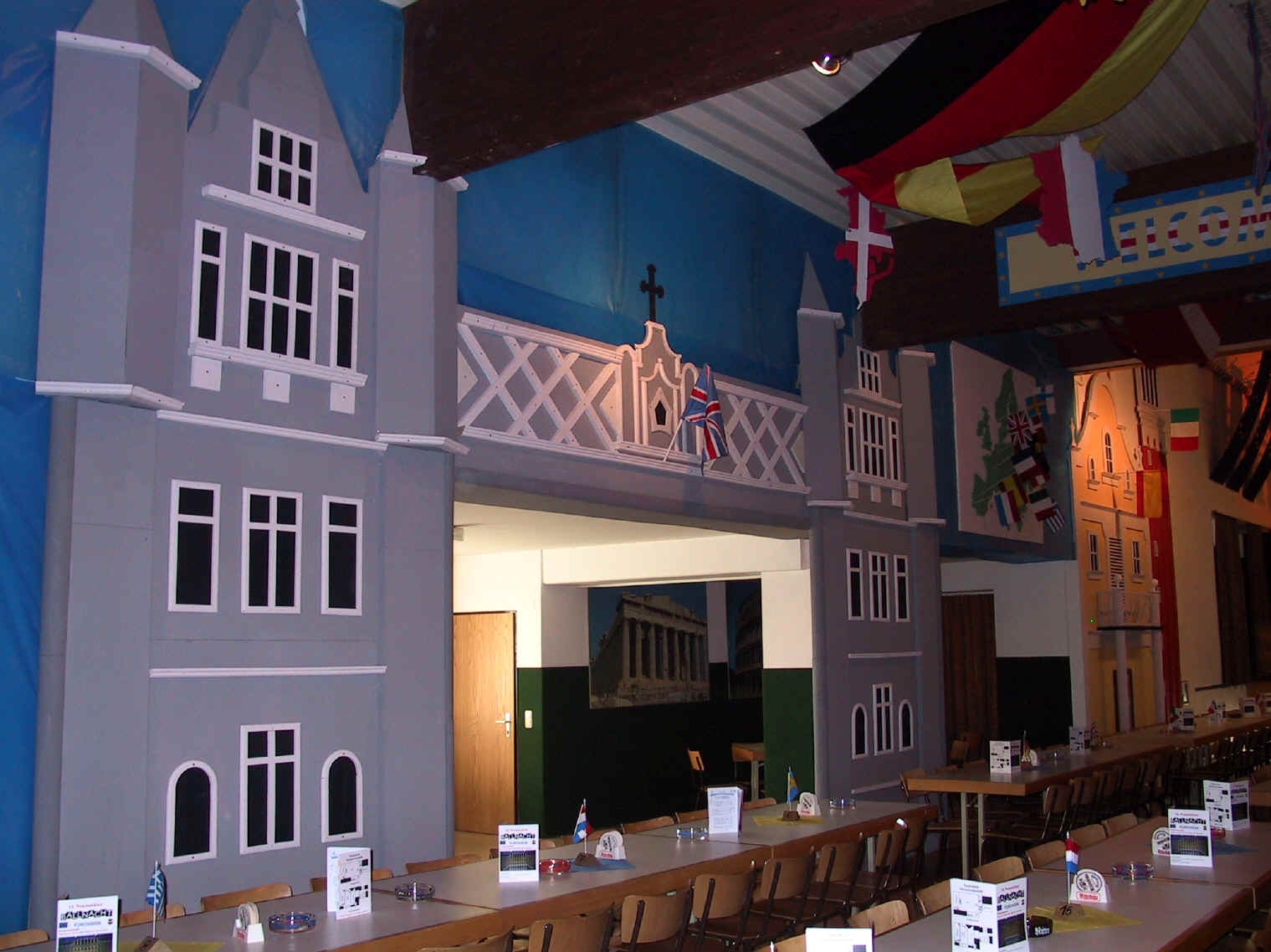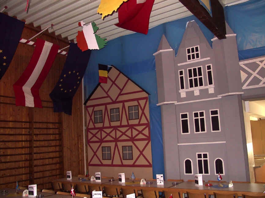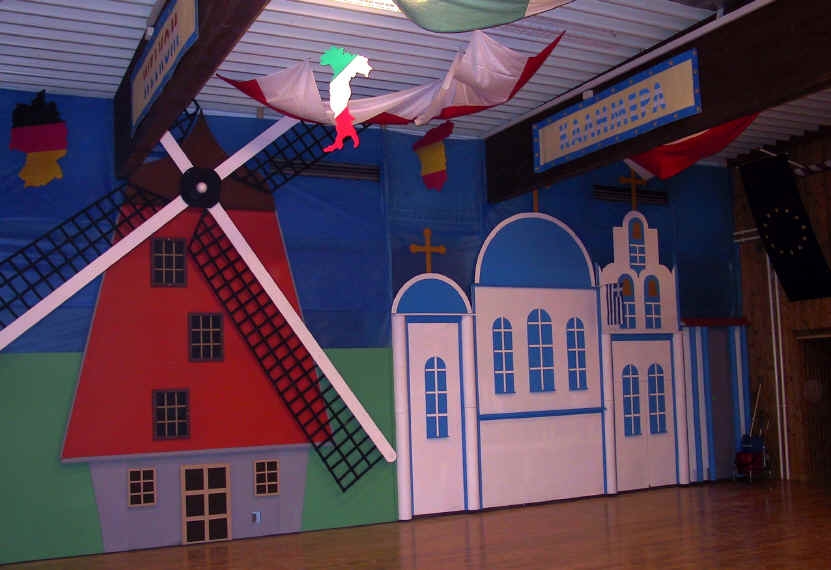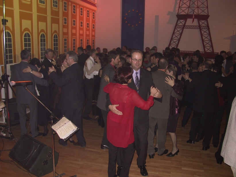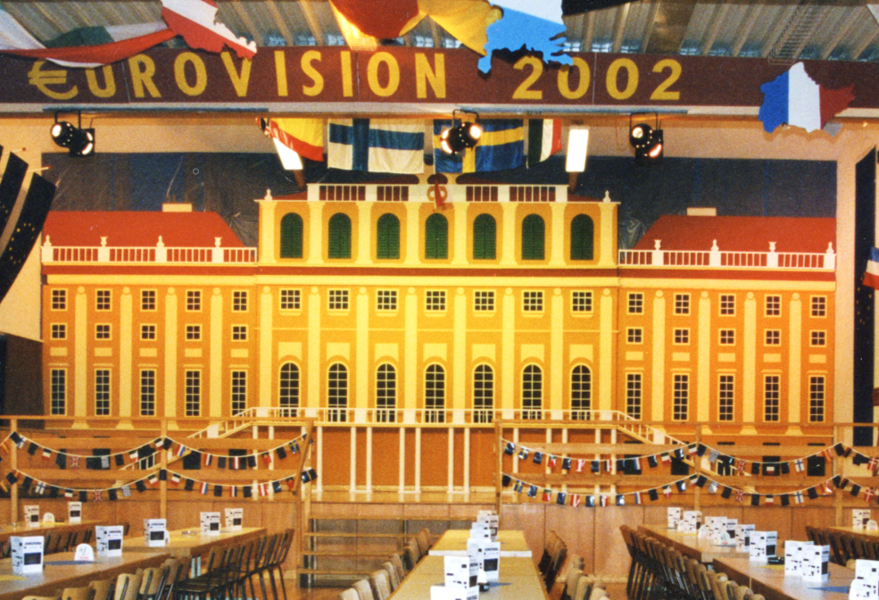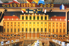 Eurovision – so hieß das heurige Motto für die 14. Neumarkter Ballnacht. Und die Vision des Euros wurde auch in das Turnerheim gebracht. Nach fünfwöchiger Vorarbeit und genau 1.562(!) freiwilligen Arbeitsstunden konnte am Samstag, den 26. Jänner 2002 Obmann Vbgm. Gerald Stutz pünktlich um 20:15 Uhr über 700 Gäste begrüßen, darunter einige Bürgermeister der Umgebung. Als Dekoration für oö schönst dekorierten Ball wurden viele europäische Bauwerke aus Holz nachgebaut, die Nachbildung des 14 x 8 m großen Schlosses Schönbrunn war der absolute Höhepunkt. Die Showband “Die Könige“, zeichnete heuer zum ersten Mal für die musikalische Verantwortung.