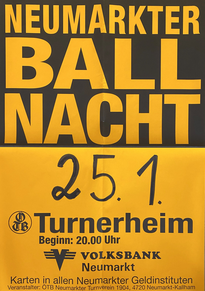 Die schwungvolle Eröffnung gestaltete der Tanzsportklub Thalheim, der passend zum Motto herrliche Tanznummern einstudiert hatte. Die Mitternachtseinlage bestritt das beste DJ Ötzi-Double im deutschsprachigen Raum. Die Verlosung der vielen Hauptpreise, wie Reisen nach Gran Canaria und Kroatien, Fernseh- und Bürosessel, oder Seenrundflüge, war ein weiterer Höhepunkt in dieser Nacht. Auch heuer sorgten wieder viele “Außenstellen“ für das leibliche Wohl der Gäste. Die Ritter Pils-Bar, das Restaurant, der Heurige und auch die Kellerbar “The Londoner“. Auch gab es in der sonstigen Werkstätte wieder das Pub “Sir Prise“ mit ausländischen Bieren und cooler Musik und eine vergrößerte Vinothek mit speziellen Weinen erfreute viele Hobby-Someliers. In Summe gesehen kann man, ohne zu übertreiben, von einer perfekten Neumarkter Ballnacht sprechen, an deren Gelingen nicht weniger als 76 Turngeschwister, unter der hervorragenden Leitung der Festwarte Schatz Albin und Schöberl Christian, beitrugen.