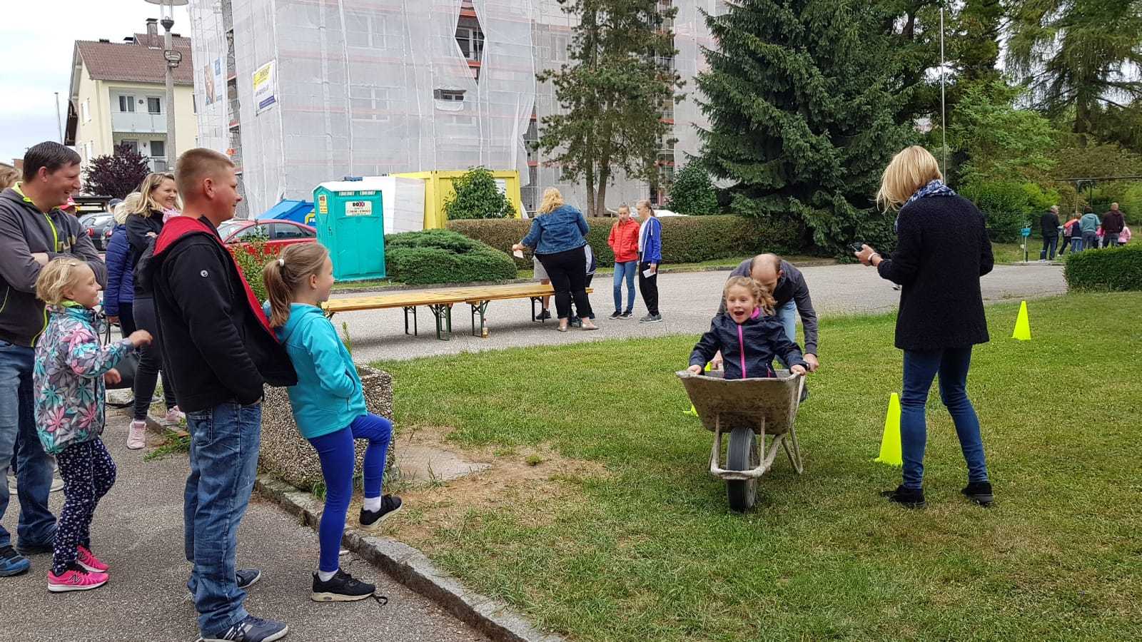 Eine lustige Challenge veranstaltete die Turnerjugend am Abend vor der Sonnwendfeier. Zahlreiche Väter oder Mütter stellten sich mit ihren Kindern lustigen Bewerben. Geschicklichkeit, Schnelligkeit, Wissen und auch Glück waren gefordert, um unter dem Motto „2 geben alles“ erfolgreich zu sein. Nach zwei Stunden Eltern-Kind-Spaß konnte Jugendwartin Anja Starrermayr die Siegerehrung durchführen. Der Spielmannszug spielte dazwischen ein paar Stücke. Im Anschluss wurden an alle Kinder Fackeln ausgeteilt, und wer noch Lust hatte, schloss sich dem Fackelzug Richtung Kalvarienberg, Turnerdenkmal, an. Dort war schon alles vorbereitet für die Sonnwendfeier.