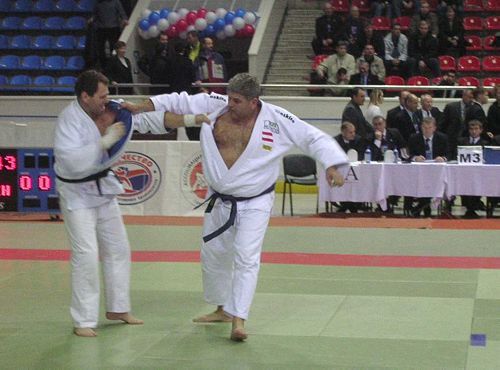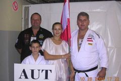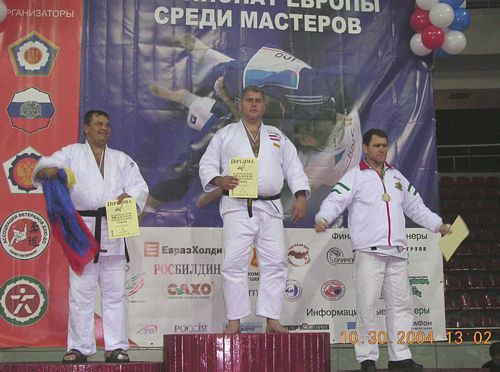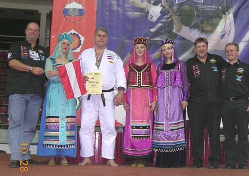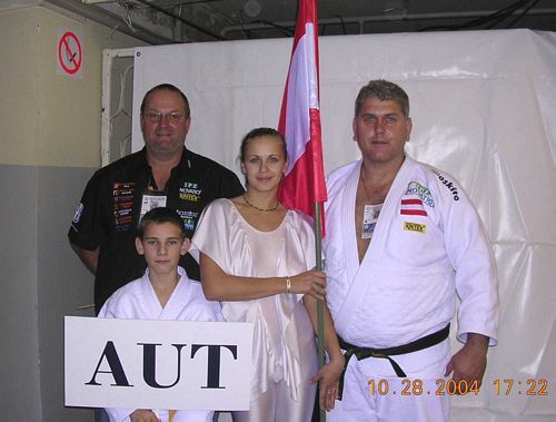 Und noch einen Titel konnte unser Judo-Abteilungsleiter Helmut Gföllner vom IPZ-Judo-Team in diesem Jahr erkämpfen. Bei den 2. Senioren-Europameisterschaften in St. Petersburg waren hunderte Judokas aus 17 Nationen am Start, naturgemäß zu 80 % aus den Ostblockländern, was die beiden Medaillen noch mehr unterstreicht. Helmut verbrachte diese sechs spannenden Tage in der ehemaligen Zarenhauptstadt natürlich wieder gemeinsam mit seinem Freund, Coach und Obmann Gerald Stutz. Auch der Hauptsponsor Alfred Zechmeister sowie Obmann-Stv. Johann Leeb waren bei diesem großartigen Erfolg live dabei. In den entscheidenden Kämpfen konnte sich Helmut jeweils gegen russische, ungarische und rumänische Judokas durchsetzen. Auch in St. Petersburg waren wir das einzige Team mit russischen Autogrammkarten, die im Land des “offiziellen Schmiergeldes“ bei vielen Gelegenheiten Tür und Tor öffneten. Das Jahr 2004 kann daher als das erfolgreichste Sportjahr von Helmut gesehen werden. Doppelweltmeister und Bronzemedaille in Wien sowie Europameister und Silbermedaille in St. Petersburg.