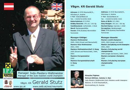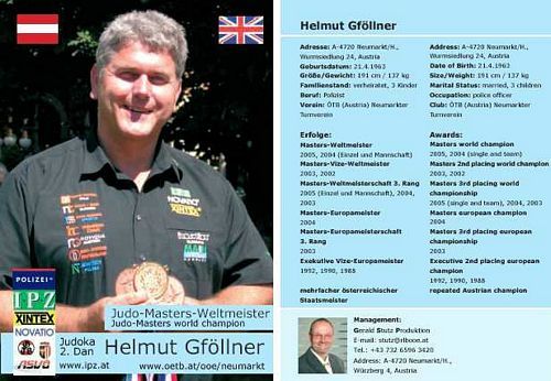 Gold gewann Helmut in der Schwergewichts- und in der offenen Klasse, Silber mit der österr. Nationalmannschaft: “Siege in einem derartigen Szenario mit mehreren tausenden von Zuschauern, wie hier in London, sind immer etwas besonders, auch wenn man weiß, dass die eigene Medaillen-Sammlung bei “Welt- & Europa-Masters“ bereits die 10 überschritten hat“. Als große Sensation kann auch das “Wie“ gewertet werden, denn Helmut konnte bis auf einen Kampf alle vor dem Zeitlimit mit Ippon beenden – auch gegen jene aus dem starken Ostblock. Mit diesen 3 Medaillen wurde er der erfolgreichste Teilnehmer dieser Europameisterschaft und mit jenen drei Medaillen von der heurigen WM im kanadischen Toronto auch der erfolgreichste Masters-Einzelkämpfer weltweit in diesem Jahr. Als regierender Welt- und Europameister wird er seine Titeln nächstes Jahr in Tours/Frankreich und Prag/Tschechien verteidigen. Begleitet wurde Helmut dieses Mal von Parzer Andreas, ebenfalls Judokämpfer unseres Vereines und sein Abt.-Leiter-Stv., da Coach und Obmann Gerald Stutz wegen Terminüberschneidungen verhindert war.