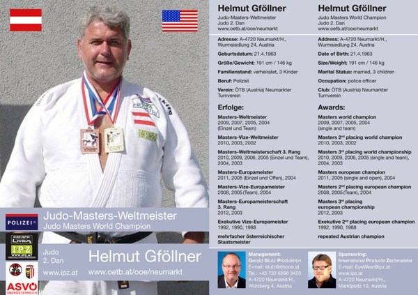 Bei der Judo-Masters-WM Anfang November 2012 in Miami/Florida erreichte der weltweit erfolgreichste Judo-Masters-Kämpfer Helmut Gföllner den sensationellen 5. Rang. Der 49-jährige Judo-Abteilungsleiter unseres ÖTB Neumarkter Turnvereines konnte den Weltmeistertitel, den er in Atlanta erkämpfte, heuer leider nur knapp nicht verteidigen. Dies waren seit 11 Jahren die ersten WM ohne Medaillen für den Neumarkter, aber das Starterfeld war sehr stark. 756 Kämpfer aus 45 Nationen, davon alleine 368 aus dem Ostblock machten die Titelverteidigung zu schwierig. Das Starterfeld wird zudem immer professioneller und so standen Gföllner in seiner Klasse 23 weitere Kämpfer aus aller Welt gegenüber, zum Teil ehemalige Olympiateilnehmer. In den Vorkämpfen konnte er sich gegen ungarische und deutsche Judoka, zum Teil mit Ippon-Wertung durchsetzen. Nur im Finaleinzug war gegen einen technisch perfekten Kasachen Alimzhanov Schluss und der Kampf um Platz 3 ging knapp gegen den Ukrainer Topalov, trotz Führung von Gföllner, verloren.
