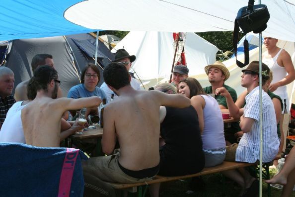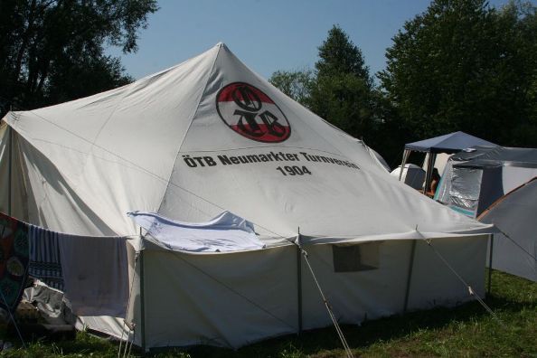 Der zweite und auch schon wieder letzte Tag führte uns von Gaspoltshofen über Schwanenstadt zum Zielort in Hainprechting. Dort versorgte uns der 10-Kämpfer-Trupp, der gerade den Zeltplatz-Frühschoppen ausklingen ließ, mit ersten Getränken. Die zwei Zehnkämpfer Jürgen Ruttinger und Michael Ernst waren zu diesem Zeitpunkt bereits im Einsatz. Am Abend startete Otto Baumgartner auch noch beim 1500m-Geländelauf.