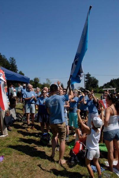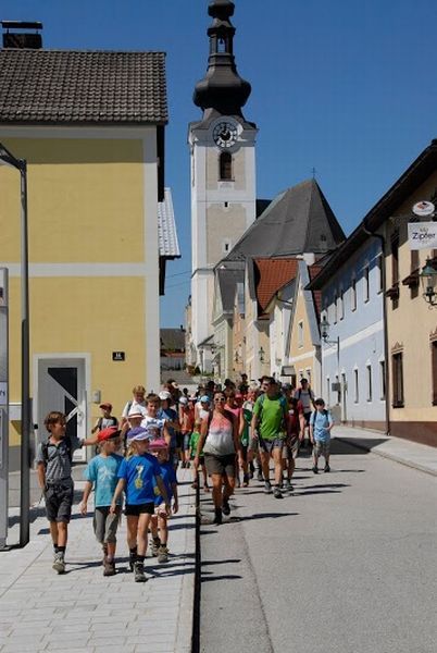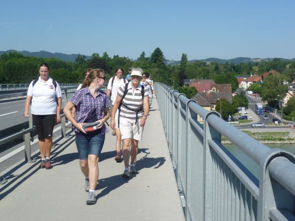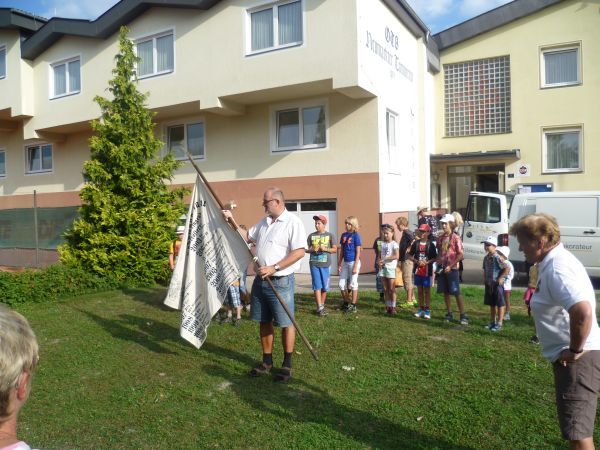 Im Jahr 1963 fand die erste Jahnwanderung im ÖTB Oberösterreich statt. Drei Neumarkter marschierten damals von daheim auf die Giselawarte nach Linz und brachten aufgrund der kleinen Teilnehmerzahl auch gleich den Sieg nach Hause. Bei der 50. Jahnwanderung war das Ziel das gleiche und wir Neumarkter wollten als fleißigster Jahnwanderverein natürlich wieder gewinnen! Und mit der riesigen Anzahl von 80 Wanderern, darunter 26 Kinder, hatten wir auch große Hoffnung auf den Sieg. In drei Tagen wanderten wir bei bestem Wetter über Waizenkirchen, Stroheim, Aschach, Bad Mühllacken, Rottenegg und Gramastetten nach Lichtenberg auf die Gis. Dort angekommen, absolvierten unsere Wettkämpfer noch 8-Kampf, 10-Kampf, Geländelauf oder Dreikampf. Bei herrlichem Sonnenschein warteten wir schließlich auf die äußerst spannende Siegerehrung. Zuerst wurden die Sieger der Wettkämpfe aufgerufen – darunter uch viele Neumarkter. In der Vereinswertung wurde es recht spannend, ehe Landesturnwart Willi Gröbner schließlich als letzten Verein den unsrigen aufrief: Erster Platz an den Neumarkter Turnverein! Mit nur wenigen Punkten Vorsprung konnten wir in der 50jährigen Jahnwandergeschichte zum 17. Mal die Jahnwanderfahne gewinnen. Mit 80 Teilnehmern stellten wir auch, abgesehen von den Linzer Gastgebern, die größte Wandergruppe. Unsere Turnwarte Anneliese Reizl und Florian Ernst nahmen als Siegeszeichen die neue Jahnwanderfahne entgegen. Darauf wird in jedem Jahr der Siegerverein eingestickt – und da wir auch im Vorjahr gewonnen hatten, steht nun bereits in der zweiten Zeile das zweite Mal: ÖTB Neumarkter Turnverein 1904 Wir sind sehr stolz auf alle Wanderer und alle Wettkämpfer. Aufgrund einer neuen Punkteregelung, die das Wettkämpfen sehr stark aufwertet, zählte jede einzelne Leistung, jeder Dreikampf, jeder Geländelauf. Gemeinsam haben wir es wieder geschafft! Gemeinsam wollen wir auch im nächsten Jahr bei der 51. Jahnwanderung teilnehmen und nach Bad Goisern, Untersee am Hallstätter See wandern. Diese Wanderung wird zwar länger, an die 100 km und wahrscheinlich 5-tägig, jedoch weniger hügelig als ins Mühlviertel. Wir freuen uns darauf!