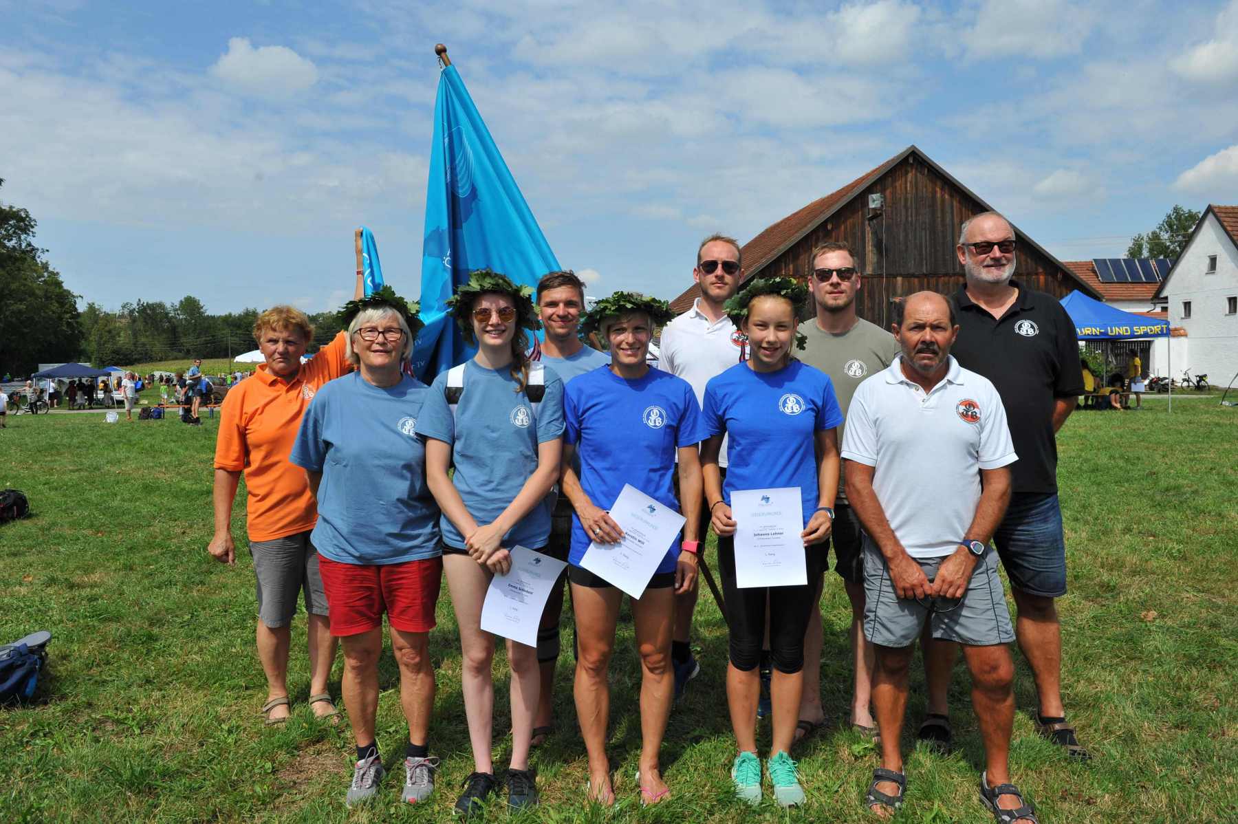 Es ist nur ein kurzer Weg von Neumarkt nach Taufkirchen/Pram und daher dachte auch kein Neumarkter Wanderer an einen Sieg der diesjährigen Jahnwanderung. In zwei gemütlichen Tagen, die zu ausgiebigen Einkehrschwüngen einluden, wanderten wir schließlich über Raab zum Zielort in St. Florian, nahe Taufkirchen. Unsere Wanderwarte Lies und Hans fanden wieder wunderschöne entlegene Wege, besonders erwähnenswert ist der Weg durch das Pramtal. Am Ziel angekommen stellten wir schnell fest, dass der Turnverein Taufkirchen alles perfekt organisiert hatte. Es gab eine große Auswahl an Speisen und Getränken. Wettkampforte, Ausschank, Zeltplatz und Sanitäranlagen waren alle schnell und leicht erreichbar und das Schönste, nicht nur für die Kinder, war das Bad in der aufgestauten Pram. Bei der Siegerehrung am 15. August freuten wir uns über Neumarkter Sieger im Dreikampf und Geländelauf: Marianne Sattler, Emma Schiebold, Kerstin Will, Johanna Lehner und Otto Baumgartner. Bei den Zehnkämpfern konnten zwei ausgezeichnete dritte Plätze belegt werden von Johannes Pichler und Michael Ernst. Als es dann bei der Siegerehrung der Gesamtwertung hieß: 1. Platz für den Neumarkter Turnverein war die Überraschung und Freude sehr groß! Es war der 6. Sieg für Neumarkt in sieben Jahren – eine beachtliche Leistung und Kontinuität. Mehr Konkurrenz aus den anderen Vereinen wäre uns willkommen! Vielleicht im nächsten Jahr – wenn wir gut 100 km nach Grein/Donau zurücklegen werden.