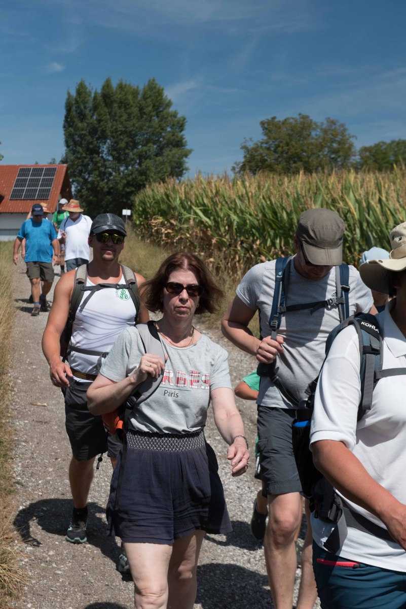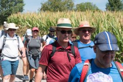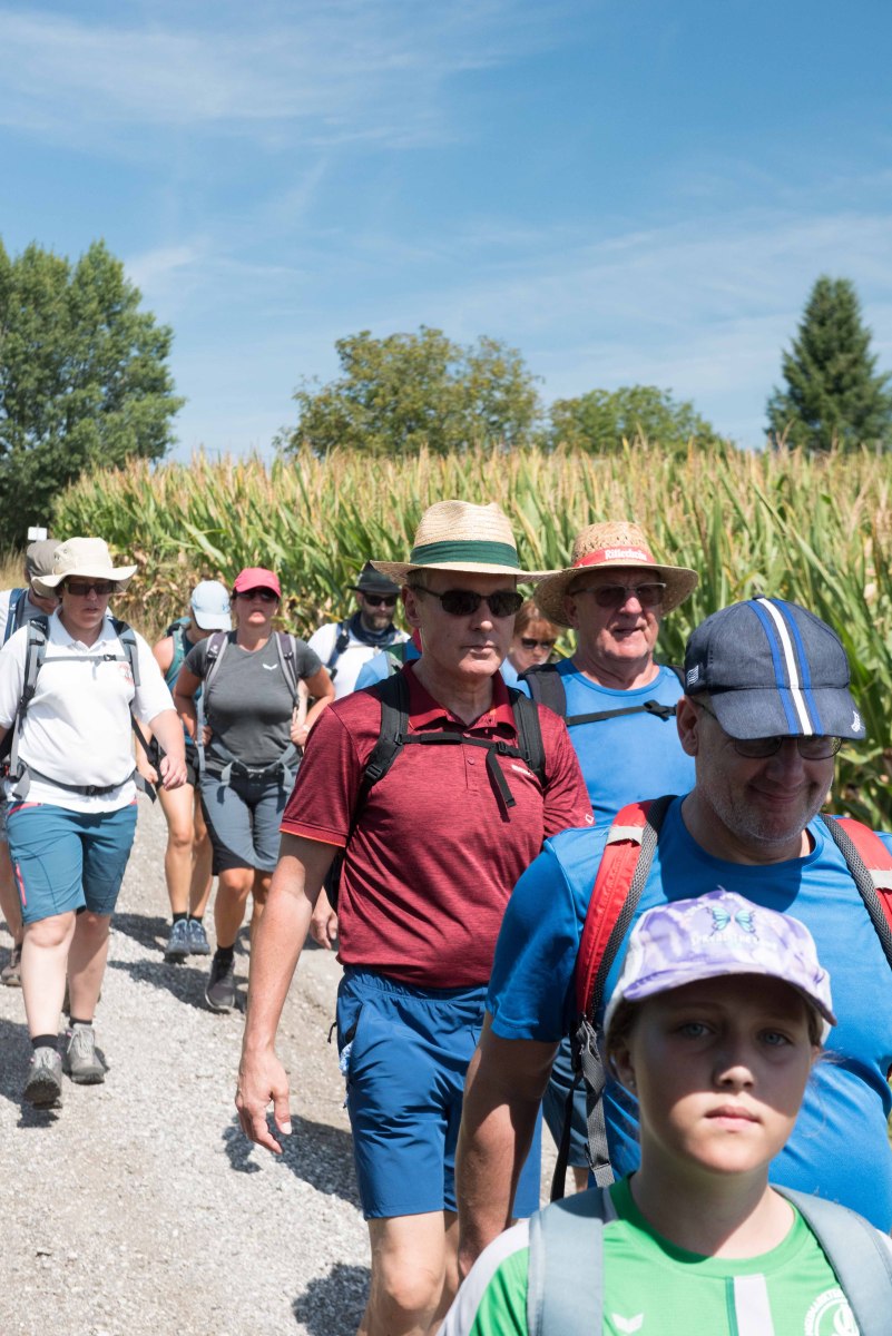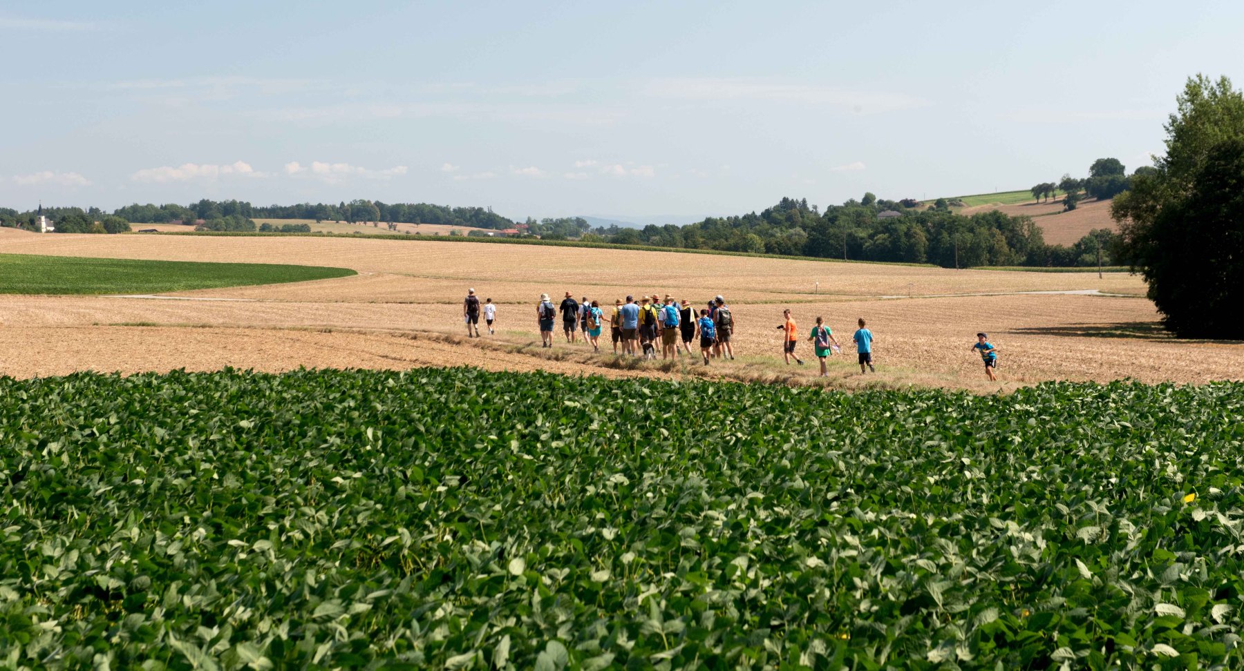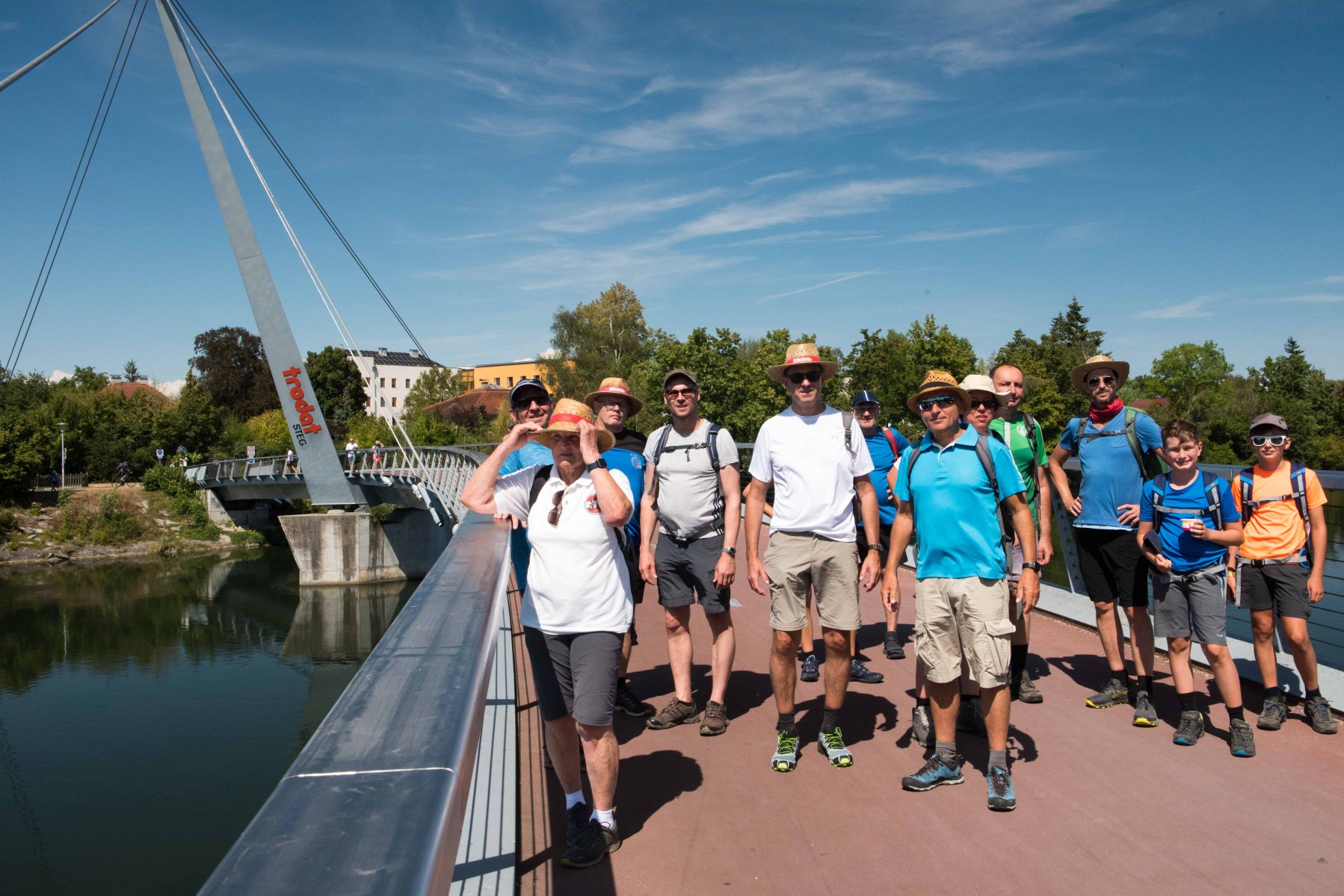 Der dritte Tag sollte mit etwa 30 km der längste werden – und auch der heißeste. Wenn die Bäume fehlen und jede Straße asphaltiert ist werden auch 32 Grad zu tropischer Hitze. Dankenswerter Weise sorgte Jürgen auch an diesem Tag einmal am Vormittag und einmal am Nachmittag für eine Labestation unterwegs. Noch mehr verschwitzt als am Vortag kamen wir am Abend in Hofkirchen im Traunkreis an – da war es auch schon egal, dass die Dusche kalt war. In einem erstklassigen Wirtshaus belohnte sich jeder selbst für seine starke Leistung. Die letzte Etappe war mit ca. 8 km schnell gemeistert und gegen Mittag erreichten wir das Ziel der 60. Jahnwanderung in Kronstorf.