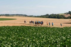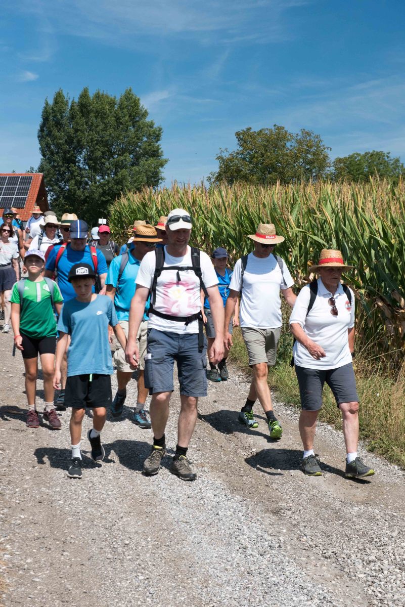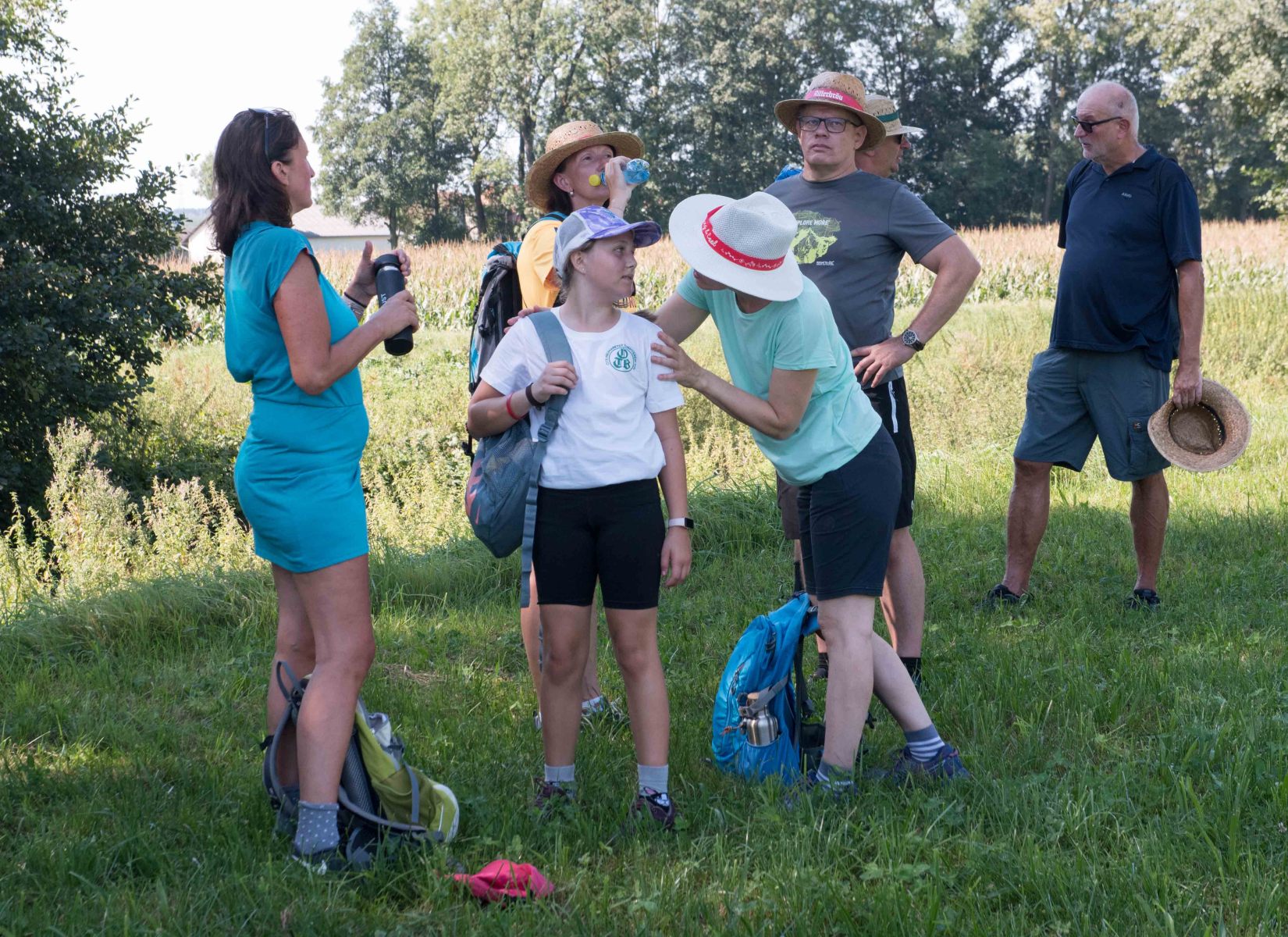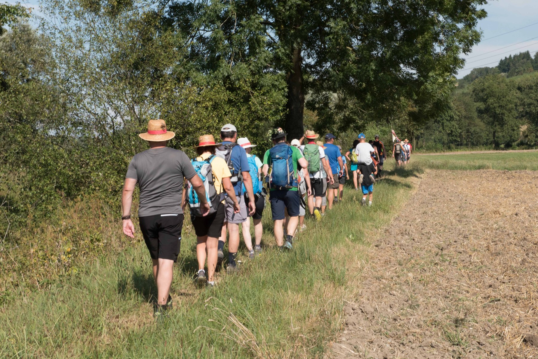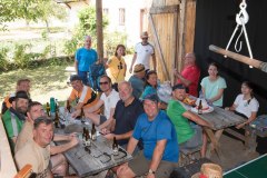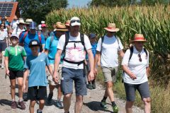 Der dritte Tag sollte mit etwa 30 km der längste werden – und auch der heißeste. Wenn die Bäume fehlen und jede Straße asphaltiert ist werden auch 32 Grad zu tropischer Hitze. Dankenswerter Weise sorgte Jürgen auch an diesem Tag einmal am Vormittag und einmal am Nachmittag für eine Labestation unterwegs. Noch mehr verschwitzt als am Vortag kamen wir am Abend in Hofkirchen im Traunkreis an – da war es auch schon egal, dass die Dusche kalt war. In einem erstklassigen Wirtshaus belohnte sich jeder selbst für seine starke Leistung. Die letzte Etappe war mit ca. 8 km schnell gemeistert und gegen Mittag erreichten wir das Ziel der 60. Jahnwanderung in Kronstorf.