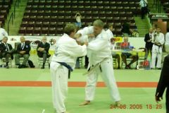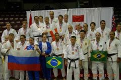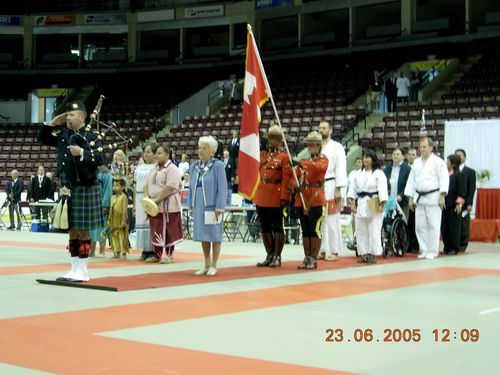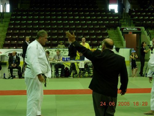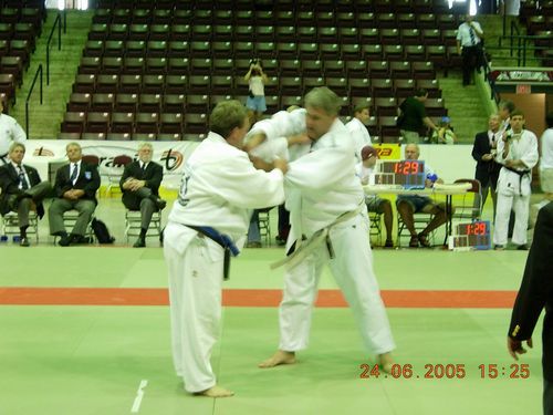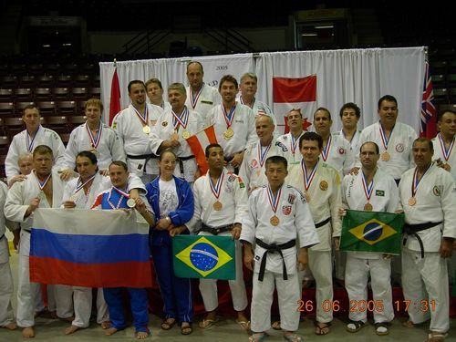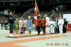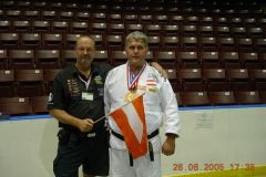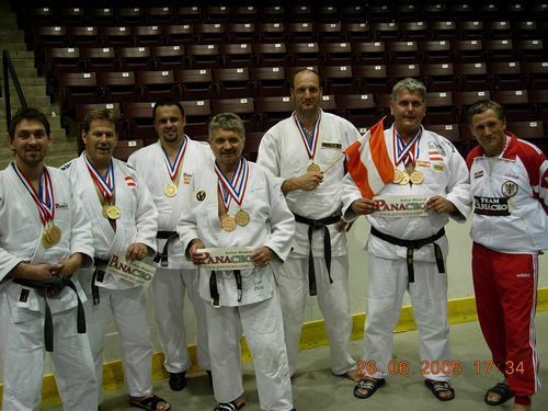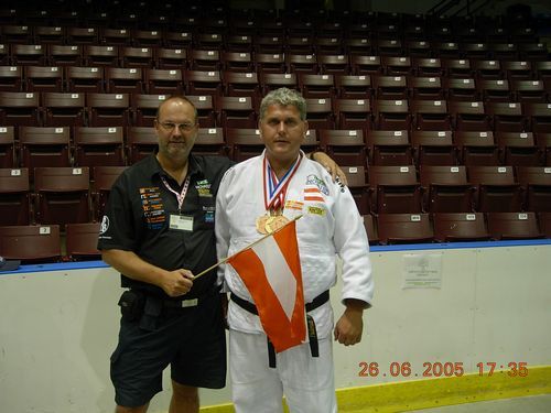 Judo-Masters-Weltmeister – Helmut Gföllner, Austria – so hieß es Ende Juni 2005 in Toronto. Unser Judo-Abteilungsleiter und Posaunist des Spielmannszuges konnte diesen Titel, den er voriges Jahr bereits sensationell in Wien erkämpfte heuer erfolgreich verteidigen. Ja mehr noch: Durch das Antreten im Mannschaftsbewerb und in der offenen Kategorie konnte dieser Titel noch um zwei Bronzemedaillen ergänzt werden. Damit war Helmut Gföllner der österr. Teilnehmer mit den meisten Medaillen. Auch von allen anderen 1.240 Teilnehmern aus 45 Nationen war er mit diesen 3 Medaillen ganz vorne angesiedelt. Nachdem schon im letzten Jahr in Wien die österreichische Bundeshymne zum ersten Mal für unseren ÖTB-Judokämpfer gespielt wurde, war es auch dieses Mal eine Freude auf der obersten Treppe zu stehen. Dabei waren die Kämpfe alles andere als “lustig“. Die Teilnehmerzahl wird immer größer und so standen Helmut Gföllner in seiner Klasse 16 weitere Kämpfer aus aller Welt gegenüber. In den entscheidenden Kämpfen konnte sich Helmut jeweils gegen russische, englische und kanadische Judokas durchsetzen.