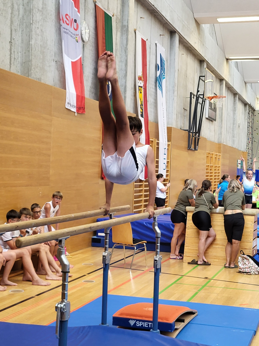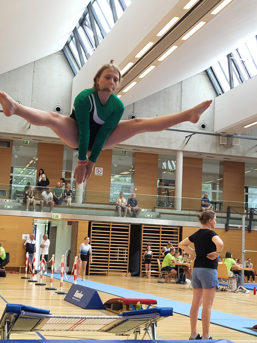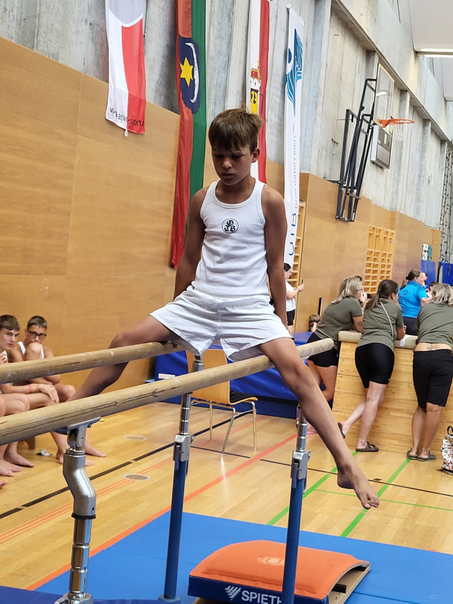 Am Sonntag standen Turnen und Leichtathletik auf dem Programm. Während das Gerätturnen für unsere Teilnehmer:innen bereits vertrautes Gebiet war, sorgten die Leichtathletikbewerbe am Nachmittag – begleitet von Regen und kühlen Temperaturen – doch für einige Nervosität. Doch auch das meisterten sie super toll. Ein besonderer Dank gilt den eingesetzten Wertungsrichtern Cornelia, Patrick, Anja, Tristan und Bianca sowie Lies und Gernot, die die Kinder beim Turnen toll betreuten.