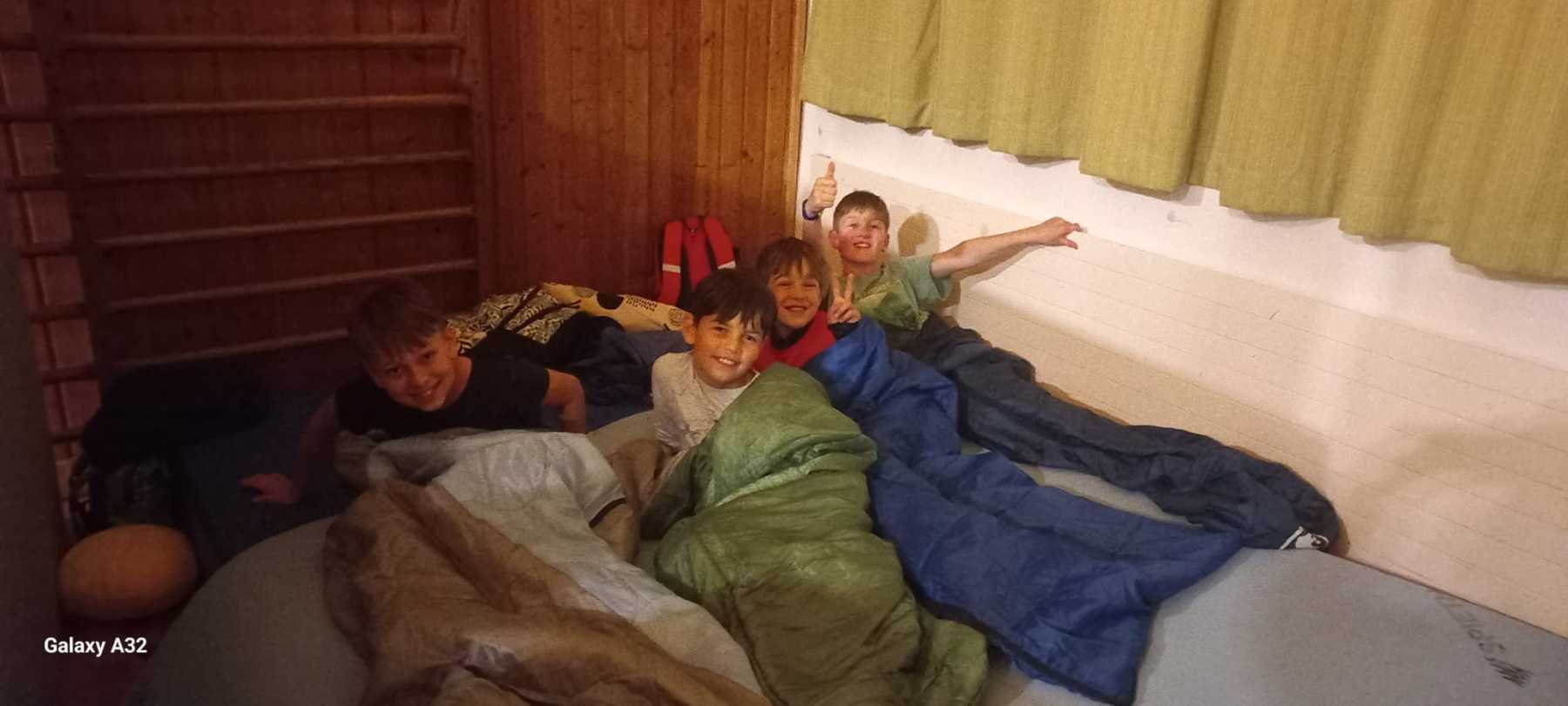 Bevor wir uns im Turnerheim mit Spaghetti Bolognese wieder stärkten, musste das Schlaflager bezogen werden. Dabei ging es heiß her, um den besten Schlafplatz mit der gemütlichsten Turnmatte zu ergattern. Auf der großen Leinwand wurde dann der Film „Der gestiefelte Kater: Der letzte Wunsch“ mit Popcorn angesehen. Nach dem Frühstück wurden die Kinder von ihren Eltern abgeholt.