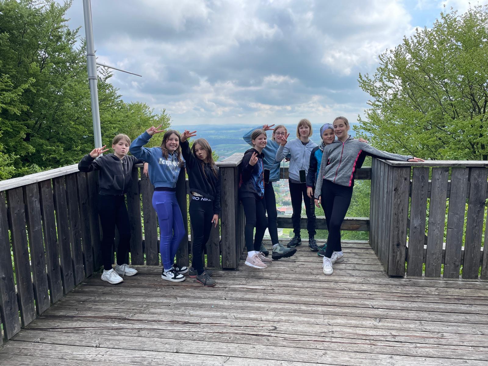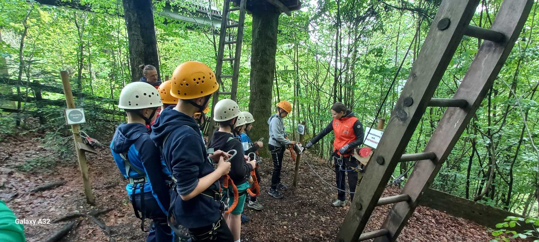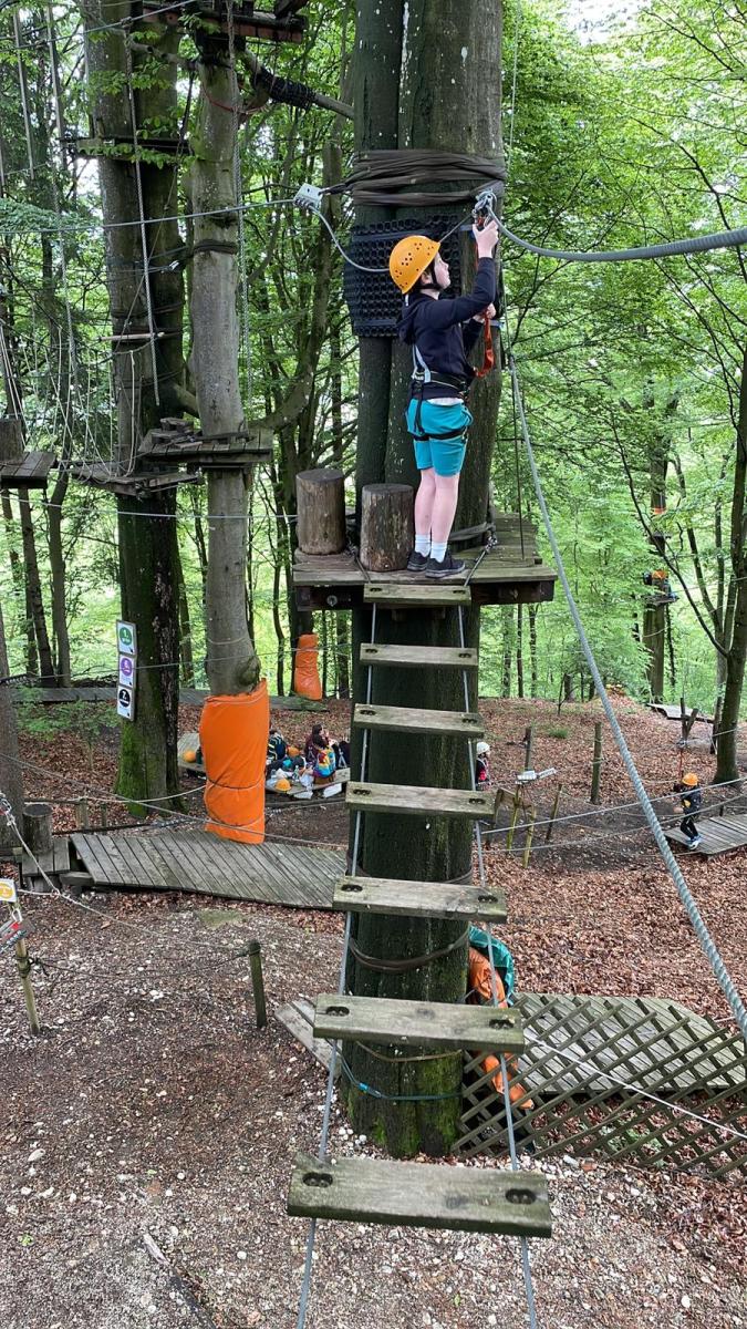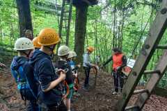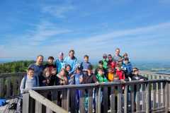 Am Parkplatz angekommen wanderten wir, nach einer ausgiebigen Obstjause, auf die Luisenhöhe mit Ziel „Waldhochseilgarten GORUCK“. Dort verbrachten wir einige Stunden in luftiger Höhe. So mancher musste über seinen Schatten springen, um die verschiedenen Parcours zu bewältigen. Im Anschluss machten wir uns auf den Weg zum Aussichtsturm. Nach 198 Stufen konnten wir das schöne Panorama genießen und ein tolles Gruppenfoto schießen. Bevor es wieder ins Turnerheim ging, machten wir Halt um ein kühles Eis zu genießen.