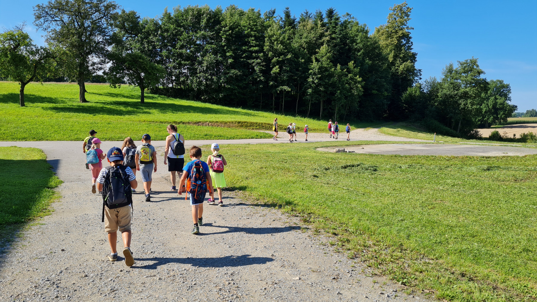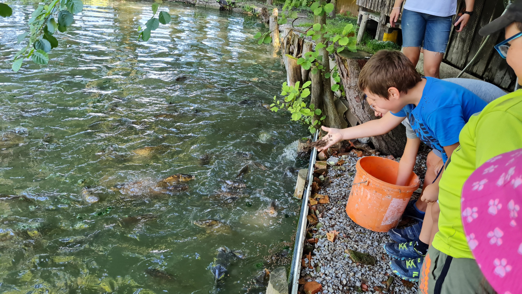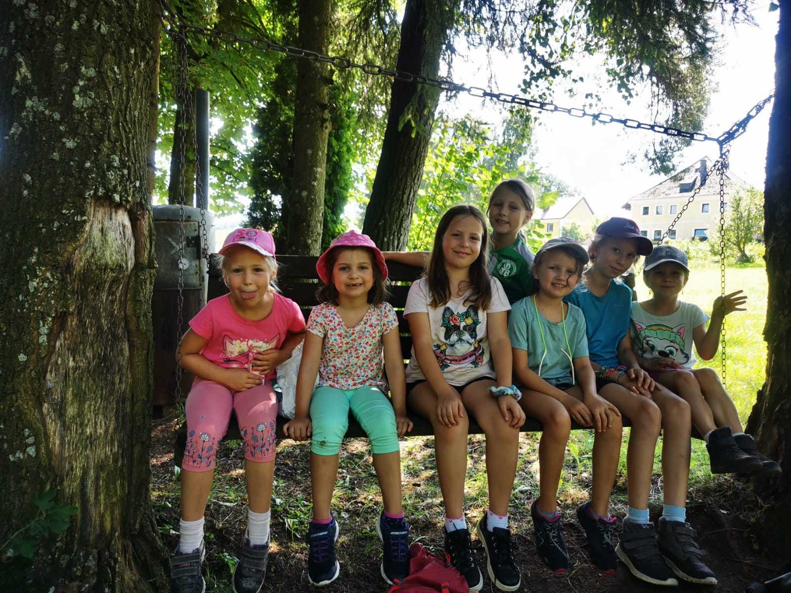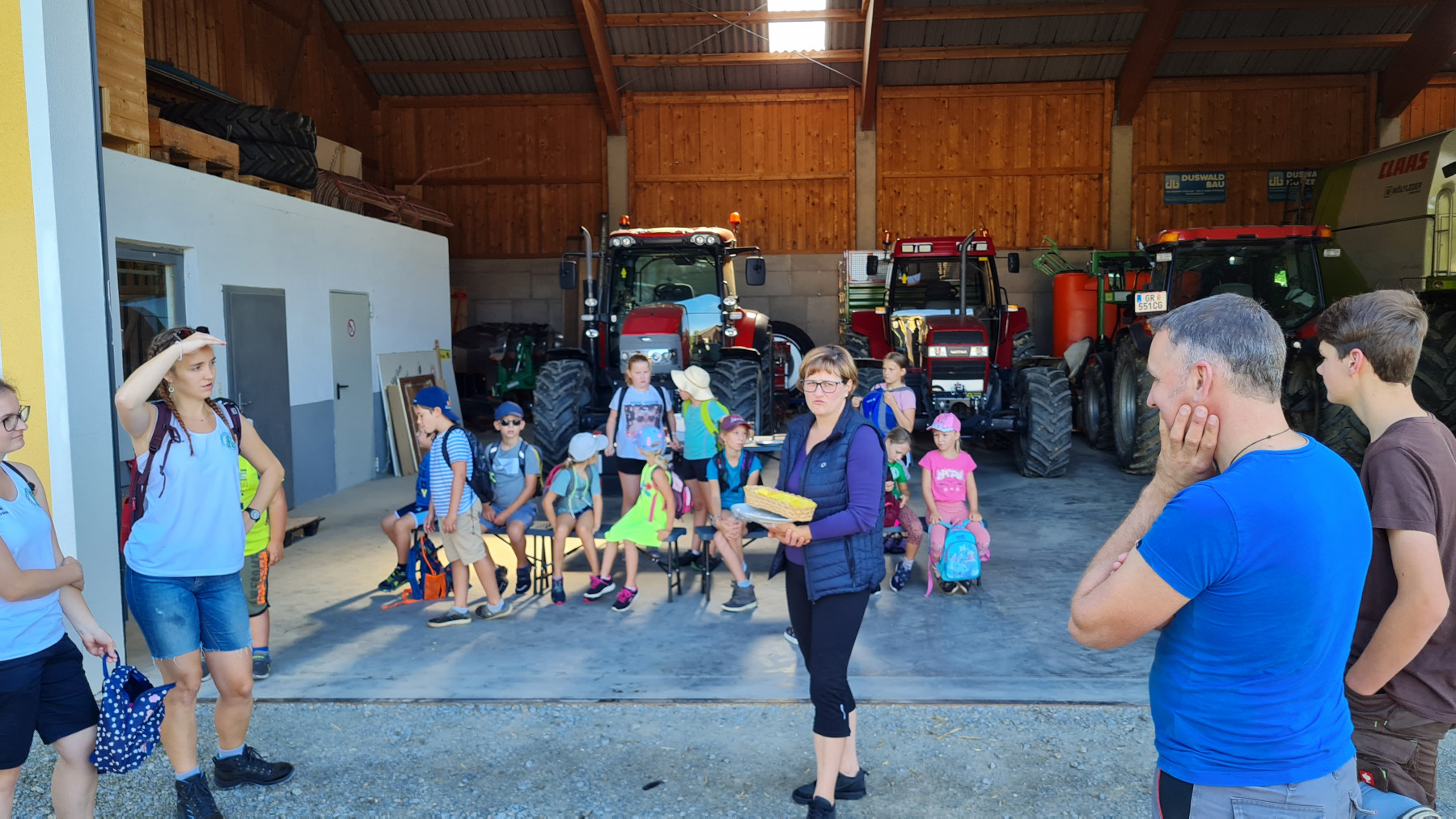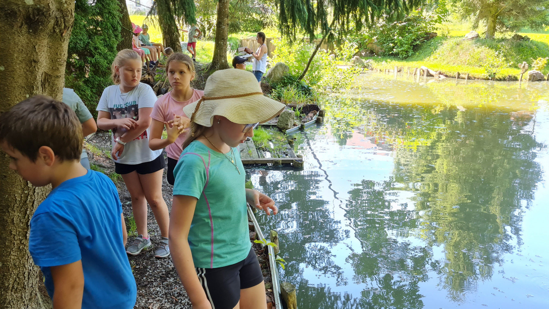 Die „Bewegten Ferien“ führten uns heute auf die Viecherlroas nach Taufkirchen zum Wimmer in Köstelboden, zum Moar z’Helmling und zum Teich vom Bäck z’Helmling.