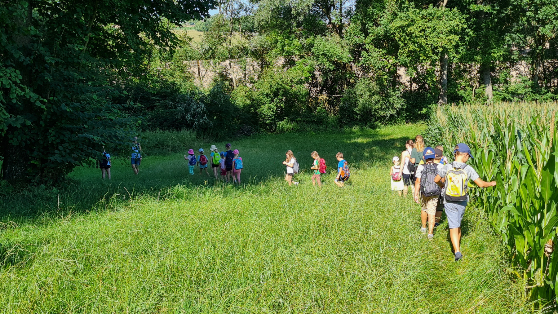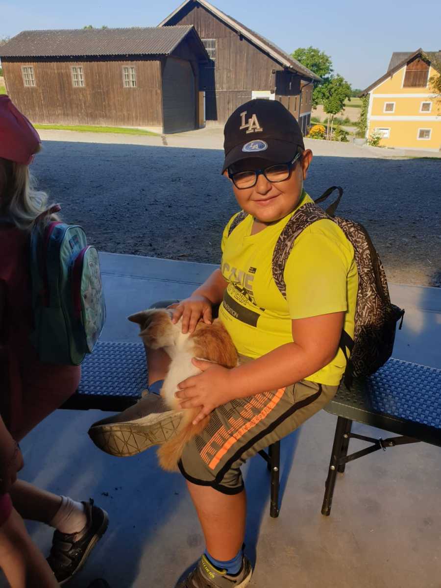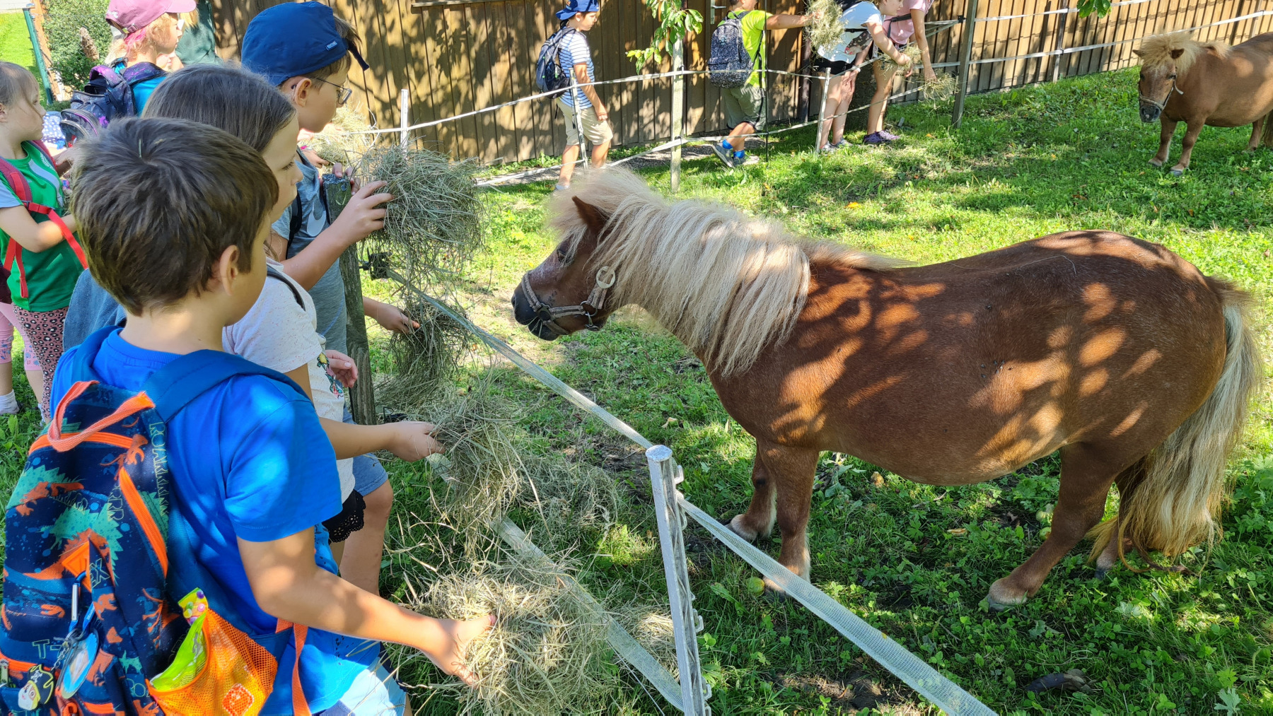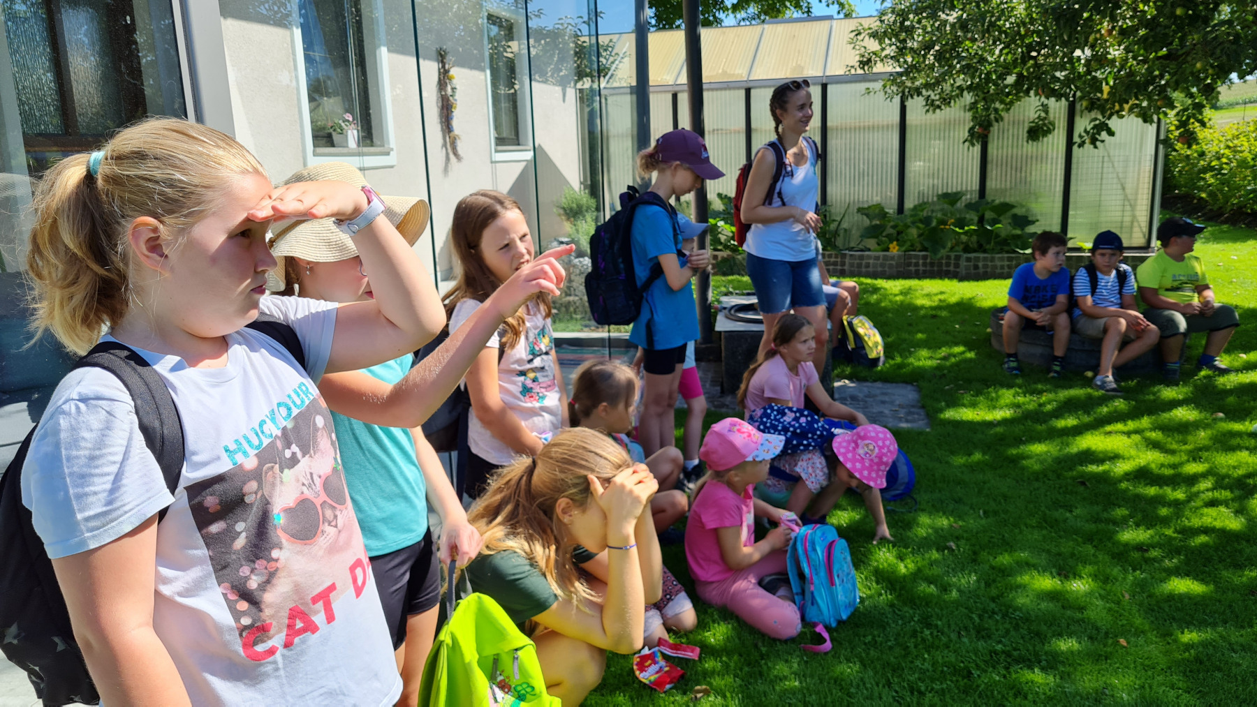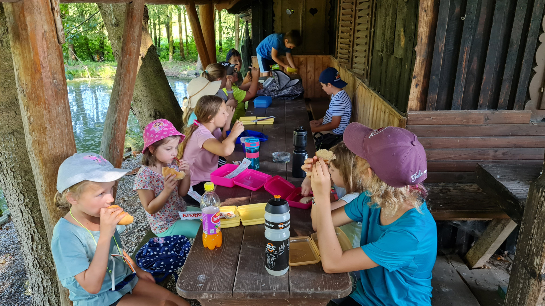 Die „Bewegten Ferien“ führten uns heute auf die Viecherlroas nach Taufkirchen zum Wimmer in Köstelboden, zum Moar z’Helmling und zum Teich vom Bäck z’Helmling.