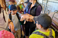 Hühner, Katzen, Kühe, Schweine, Ponys, exotische Vögel, Hunde, Karpfen… es gab viel zu sehen und zu streicheln!