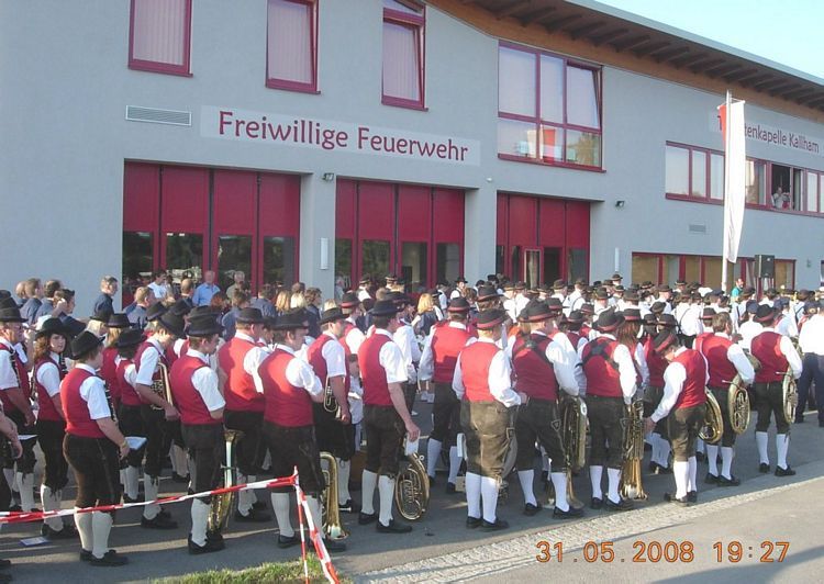 Ein wunderschönes gemeinsames Haus wurde der feierlichen Bestimmung übergeben. Und wie es sich für die Blasmusiker und die Feuerwehren gehört, wurde dies mit vielen Gästen eingeweiht. Am Sonntag war die Feuerwehr an der Reihe und 48 Feuerwehren aus Nah und Fern gaben sich die Ehre. Einen Tag zuvor, am Samstag, waren die Musiker an der Reihe und so waren natürlich auch wir mit weiteren 21 Musikkapellen geladen. Da uns die Kallhamer ebenfalls immer aushelfen und außerdem seit Jahren ihr Wunschkonzert in unserem Turnerheim veranstalten, war es für uns eine Art Pflicht teilzunehmen.