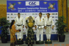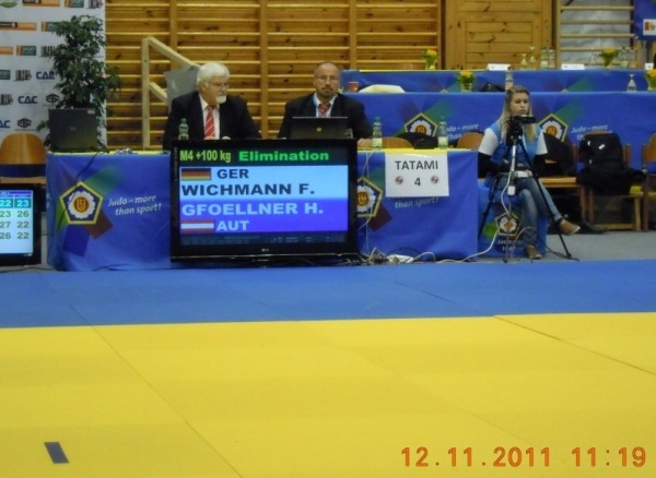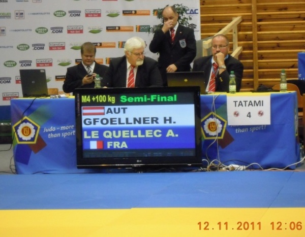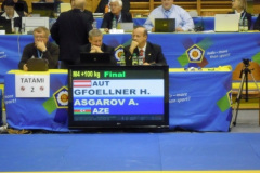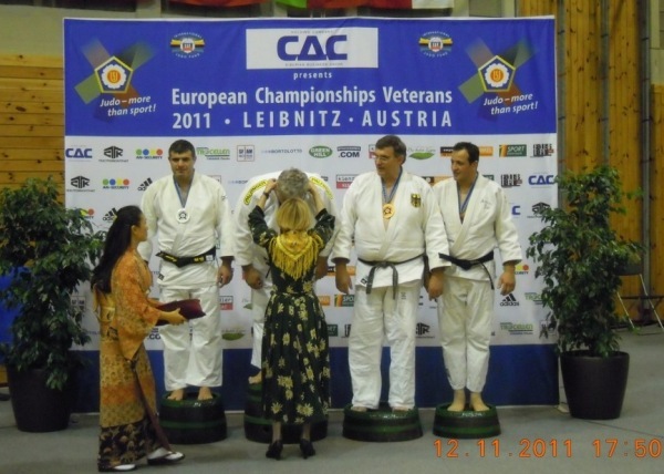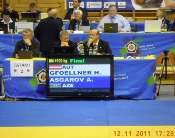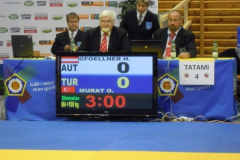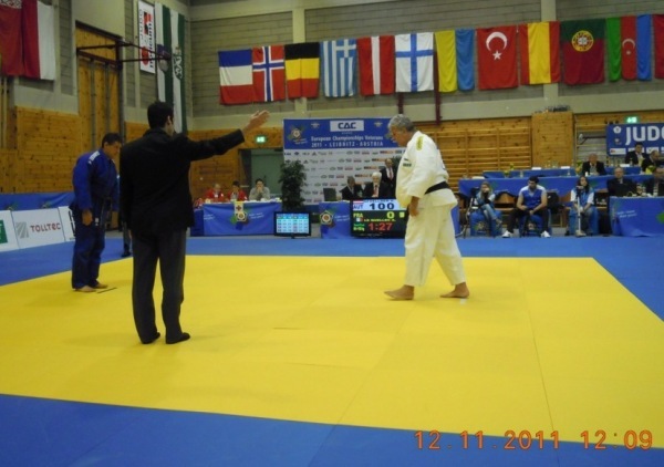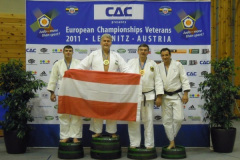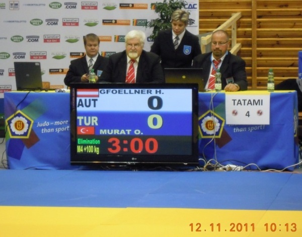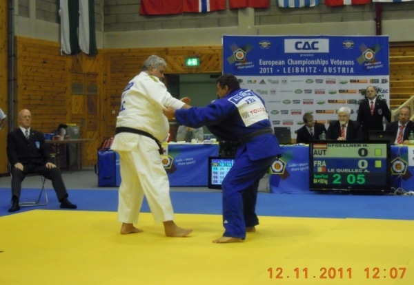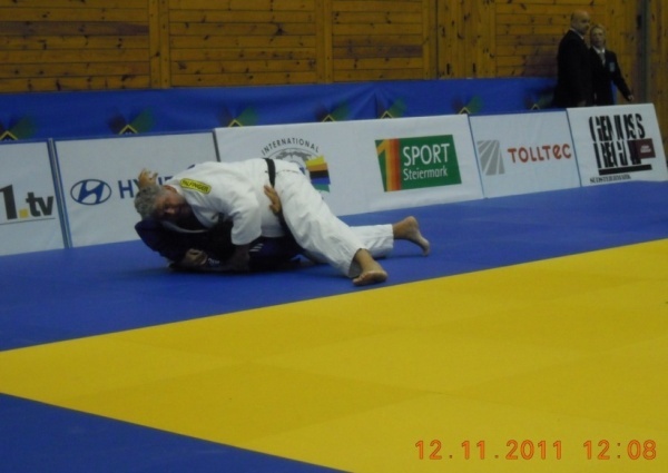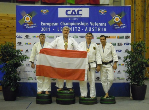 Goldmedaille im Judo Schwergewicht – Helmut Gföllner, Austria – so hieß es letztes Wochenende bei der Judo-Masters-Europameisterschaft im steirischen Leibnitz. Der 48-jährige Polizist und Judo-Abteilungsleiter unseres ÖTB Neumarkter Turnvereines war der beste von 52 gestarteten Österreichern bei der Heim-EM und konnte durch starke Kämpfe, drei davon mit Ippon, die Goldmedaille erringen. 620 Judokas aus 37 Nationen waren bei dieser EM an vier Tagen am Start. Auch die Kämpfe in der Schwergewichtsklasse über 100 kg waren sehr anstrengend, da das Starterfeld sehr schwierig und professionell war, speziell die Ostblockländer waren mit vielen Kämpfern angereist. Das große russische Team mit 117 !!! Teilnehmern machte diese EM zu russischen Meisterschaften mit europäischer Beteiligung, kein Wunder, ist doch Präsident Putin der Präsident des russischen Judoverbandes! Helmut standen in seiner Klasse 4 Kämpfer aus der Türkei, Deutschland und Frankreich gegenüber. Im entscheidenden Finalkampf konnte er sich gegen den technisch perfekten Aserbaidschaner Asgarov durchsetzen, dem er in New York vor wenigen Wochen noch unterlegen war.