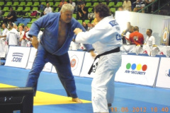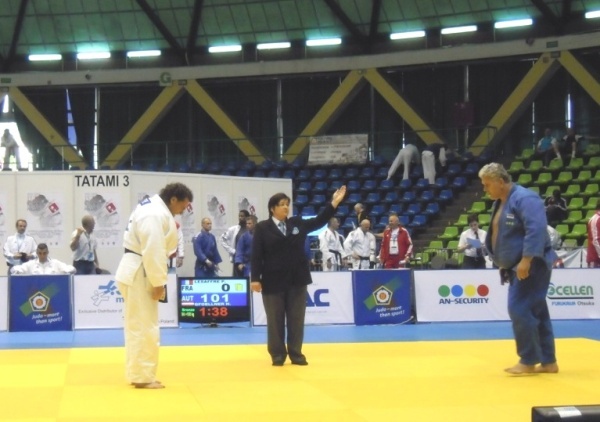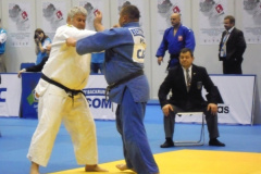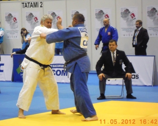 Auch die Kämpfe in der Schwergewichtsklasse über 100 kg waren wieder sehr anstrengend, da das Starterfeld sehr groß und professionell war, speziell die Ostblockländer waren mit vielen Kämpfern angereist. Das große russische Team mit über 80!!! Teilnehmern machte diese EM fast wieder zu russischen Meisterschaften mit europäischer Beteiligung, kein Wunder, ist doch Präsident Putin selbst ein Judoka und ein großer Gönner und Freund des russischen Judoverbandes! Helmut standen in seiner Klasse Kämpfer aus Frankreich und Polen gegenüber. Den Kampf um Platz 3 gewann er souverän nach 40 Sek. durch Ippon.