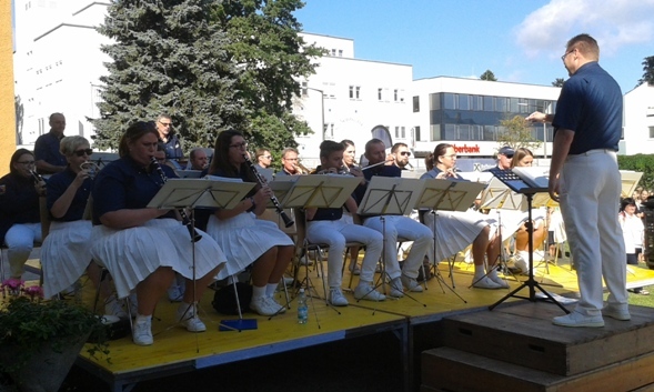 Nach der Absage des Bundesturnfests stellte der ÖTB Oberösterreich kurzerhand ein verkürztes Turnfest für die Jugend in Ried/I. auf die Beine. Ein bayerischer Frühschoppen mit Weißbier und Weißwürste durfte im Innviertel natürlich nicht fehlen und die passende musikalische Begleitung kam von unserem Spielmannszug. Auf einer kleinen Bühne am Freigelände der Jahnturnhalle spielten wir ein kurzweiliges Frühschoppenprogramm. Bei der anschließenden Siegerehrung sorgten die SZ-Bläser noch für einige feierliche Fanfaren.