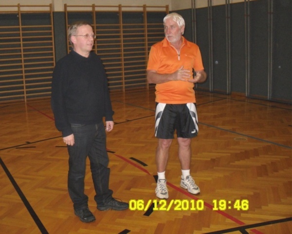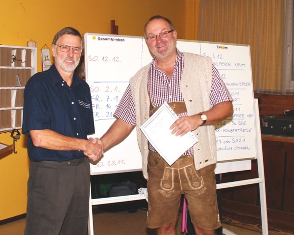 Unser Paukist Günter Schien feierte Anfang Dezember seinen 60. Geburtstag. Da war es natürlich eine ehrenvolle Pflicht, ein kurzes Ständchen zu spielen und das absolvierten wir kurz vor dem Julschauturnen im eigenen Probelokal. Erstens waren viele Spielleute anwesend und zweitens ist in der Vorweihnachtszeit fast kein Termin mehr zu organisieren. Nach dem ersten Stück gratulierte Obmann Gerald Stutz und erwähnte in einer kurzen Laudatio, dass Günter in seinen 43 Jahren als Spielmann ca. 1.500 Gesamtproben und genau 708 Einsätze absolvierte. Dies waren natürlich gewaltige Zahlen und diesem Dank schloss sich auch SZ-Leiter Manfred Schöberl an. Günter war neben dem Spielmannszug auch einige Jahre Jugendwart und ist seit Jahrzehnten bei allen Veranstaltungen als Arbeitsbiene im Einsatz. Danke für diese jahrzehntelange Arbeit für unseren Verein und viel Gesundheit für die Zukunft. Das Geburtstagsgeschenk gab es heute noch nicht, denn es wird bei der Nachfeier im nächsten Jahr übergeben.