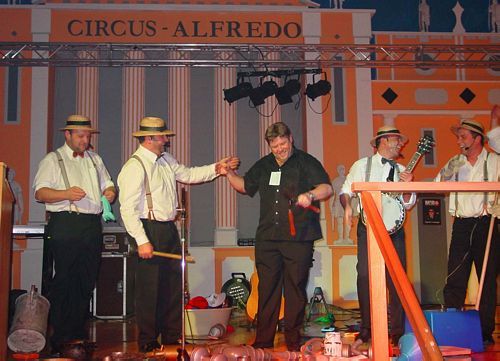 Einer unserer Hauptsponsoren, nicht nur im heurigen Jubiläumsjahr, sondern schon jahrelang und auch Hauptsponsor von unserem Judo-Senioren-Weltmeister Helmut Gföllner, feierte seinen 50. Geburtstag – Alfred Zechmeister. Und wer Alfred kennt weiß, dass er als Partylöwe natürlich diesen Anlass gebührend feiern wollte. Im Sommer war es dann fix und Alfred entschloss sich, seinen 50er in unserem Turnerheim mit ca. 250 geladenen Gästen zu feiern. Die Ballnachtdekoration “Circus Maximus“ war sein Wunsch, den wir ihm erfüllten. Auch der Spielmannszug und unsere Se Oritschinel Goatnzauns sollten natürlich einen Beitrag leisten und so organisierte unser Obmann Gerald Stutz für Alfred dieses Fest. Nur das Buffet und die Band suchte sich Alfred selbst aus. Da auch sonst ein Rahmenprogramm zu bieten war, wurde auch der Heurige und die Kellerbar aktiviert und im Saal stellten wir unsere Pilsbar auf, mit dem zusätzlichen Verkauf von verschiedenen Bargetränken. Nachdem die gesamte Dekoration von unseren drei Pensionisten Siegi Geyer, Hans Gföllner und deren “Chef“ Franz Eisterer in zwei Wochen aufgebaut wurde, hatten wir eigentlich nur mehr am Freitag zuvor die Tische zu stellen und die Bar zu aktivieren. Ab 15.00 Uhr baute am Samstag dann die Technikfirma für die Band “No Limits“., eine der besten und beliebtesten Bands zur Zeit in OÖ, auf und wir waren schon ein wenig geschockt von dem ganzen Equipment. So was hatten wir auch noch nie in unserem Turnerheim.