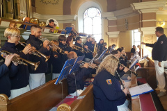 Eine Heilige Messe am Sonntag um 08:30 Uhr in unserer Pfarrkirche Neumarkt – musikalisch begleitet vom Spielmannszug, mit sehr persönlichen Texten und einem vom Turnverein organisierten Pfarrcafé im Anschluss. Das ist das Ergebnis, wenn der Herr Pfarrer den Turnverein und Spielmannszug darum bittet, einmal eine Heilige Messe zu gestalten. Für unseren Verein war es einmal etwas anderes, die Spielleute lernten viele neue Stücke und zu unserer großen Freude kamen auch wirklich sehr viele Kirchgänger. Im anschließenden Pfarrcafé verkauften wir über zwanzig selbstgemachte Kuchen und Torten. Den Erlös in der Höhe von 650 Euro spendete der Turnverein zur großen Freude des Pfarrers für die Kirchturmsanierung.