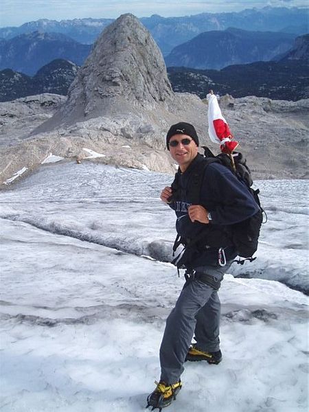 So fuhren wir am 15. September zu unserem „Endpunkt“ im letzten Jahr, und nun gleichzeitigem „Startpunkt“ im heurigen, nach Hallstatt. Nach 1.705 gewanderten Höhenmetern und einer kurzen Rast beim Wiesberghaus (1.883m) erreichten wir bei Einbruch der Dunkelheit nach 5 ½ Stunden unser erstes Etappenziel, die Simonyhütte (2.205m). Am nächsten Morgen ging es dann bestens ausgerüstet mit unserem Bergführer Toni über den Hallstätter Gletscher vorbei am Dachsteintrabanten „Schöberl“ (2.422m) auf den Gipfel des Hohen Dachstein. Beim Gipfelkreuz angekommen war die Freude natürlich riesengroß, – die mitgebrachte Speckjause, die zusammen gesungenen 3 Strophen von unserem Hoamatland, Gedanken an unsere Wanderfreunde die aus beruflichen oder sonstigen Gründen nicht dabei sein konnten, und natürlich an Franz, der dieses Abenteuer nicht mehr mit uns – wir nicht mehr mit ihm – erleben durften, und aber natürlich auch die Erleichterung über das Geschaffte und die Freude am höchsten Gipfel unseres Landes zu stehen ……werden uns noch lange in Erinnerung bleiben. Den Abstieg machten wir über die Seethalerhütte (2.740m) zurück zur Simonyhütte (in welcher wir unseren Gipfelsieg in lustig-froher Runde mit vielen schönen Liedern feierten) – von wo aus es am nächsten Morgen zurück nach Hallstatt ging.