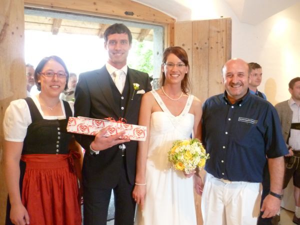 Auch heuer gab es wieder eine Spielmanns-Hochzeit zu feiern! Unsere Tenorsaxophonistin Barbara Fink heiratete ihren Verlobten Joachim Leibetseder. Bereits um 6:00 Uhr trafen sich einige Spielleute in Odlboding um mit lauten Böllerkrachern das Brautpaar zu wecken. Belohnt für diese Mühe wurden sie von der Brautmutter mit vielen Schnitzeln und Getränken.