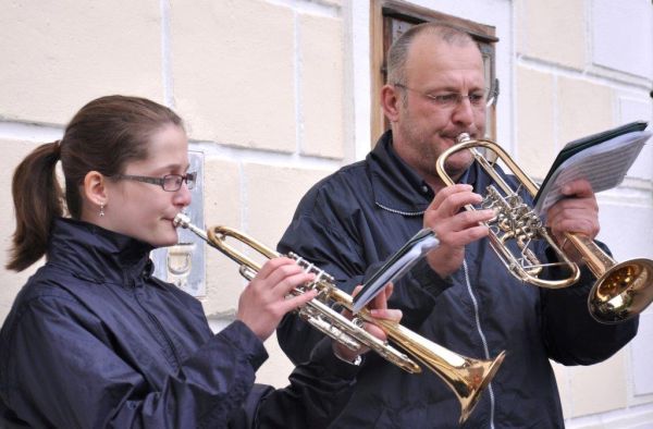 Der Spielmannszug traf sich um 13:30 Uhr beim Turnerheim, packte seine Instrumente ein und fuhr nach Kallham wo die kirchliche Trauung stattfand.