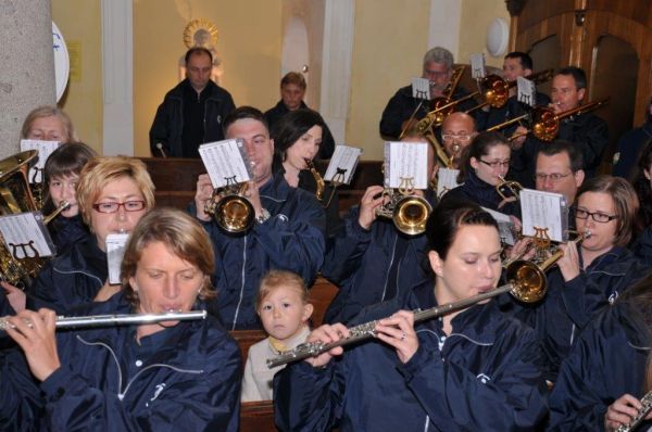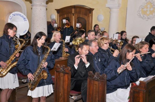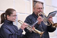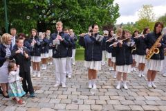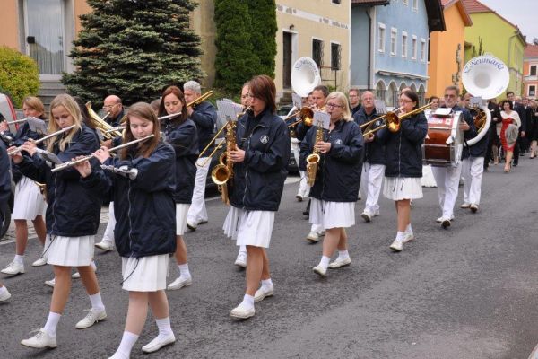 Als das Brautpaar aus der Kirche kam, stand der SZ schon wieder bereit und empfing es mit einigen Märschen, bevor sich die ganze Hochzeitsgesellschaft wetterbedingt zur Agape in das Pfarrheim begab.