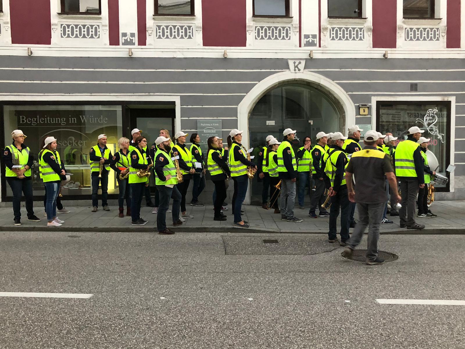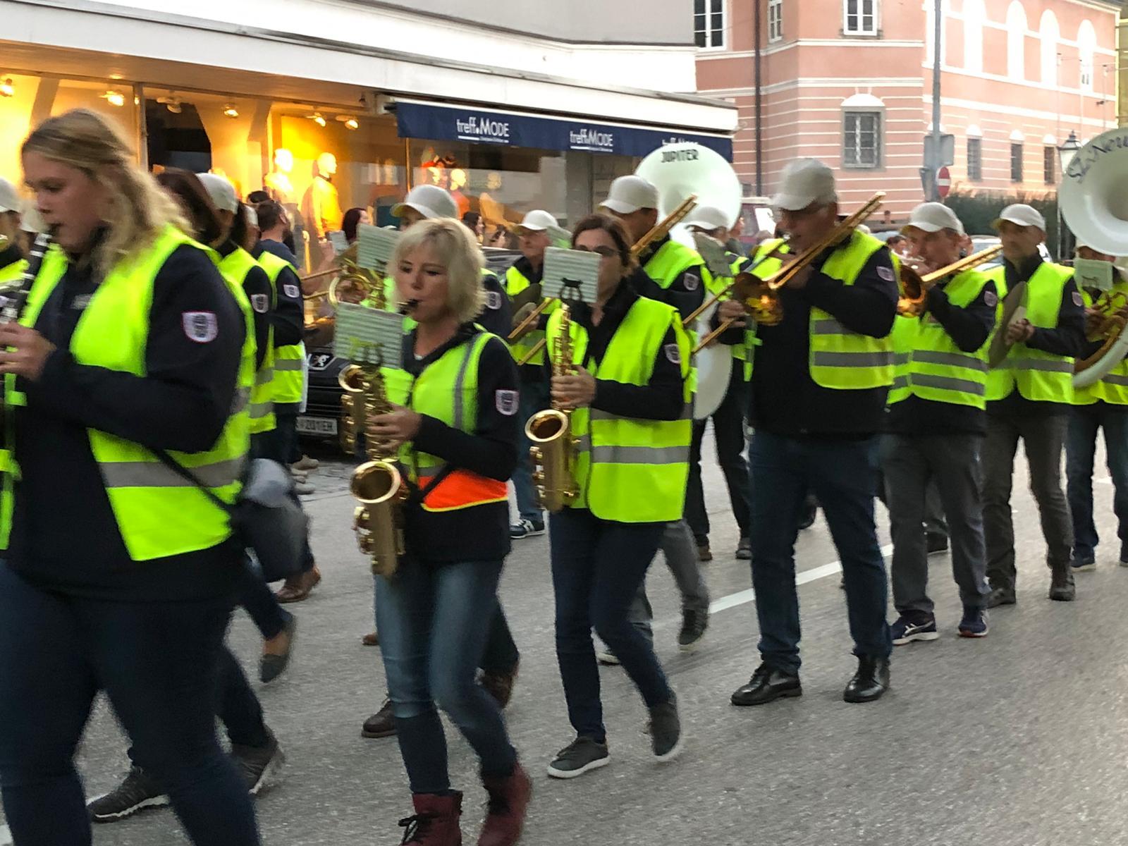 Wenn unsere Freunde des Kulturvereins Haarausfall rufen, sind die Spielleute gern zur Stelle. Es verbindet uns schließlich eine lange filmische Partnerschaft. Bereits 2005 spielte der Spielmannszug im KV-Haarausfall-Kinofilm „Kung Fu Fighting“ eine kleine Nebenrolle. Heuer durften wir den großen Umzug zur Weltpremiere des Films „Shit Happens“ beim Starmovie Peuerbach am 13. September musikalisch begleiten. Ein recht lustiger Einsatz mit lustigen Filmemachern und lustigem Publikum.