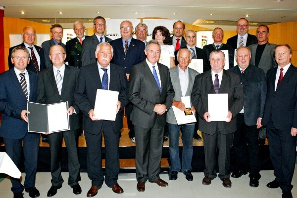 Als Überraschung spielte sogar der komplette Spielmannszug „seines“ ÖTB Neumarkter Turnvereines in Linz auf und verlieh der feierlichen Ehrung einen würdigen Rahmen. Auch die Familie, Freunde, der Bürgermeister von Neumarkt und das ganze ASVOÖ-Präsidium waren zu dieser Feier gekommen. In seiner Laudatio ging LR Sigl auf die vielen sportlichen Funktionen des Geehrten ein, der seit über 20 Jahren in vielen Bezirks- und Landesgremien des ÖTB OÖ, im Vorstand des ASVOÖ und auch seit Jahren schon im Landessportrat des Landes OÖ – dem höchsten Sportgremium in OÖ – mitarbeitet.
