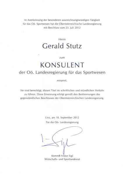 Konsulent d. oö. Landesregierung für Sportwesen für Obmann Gerald Stutz