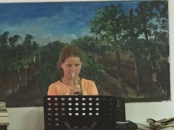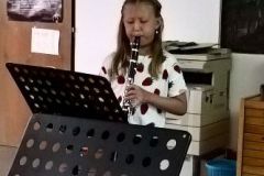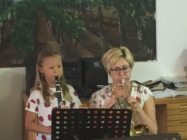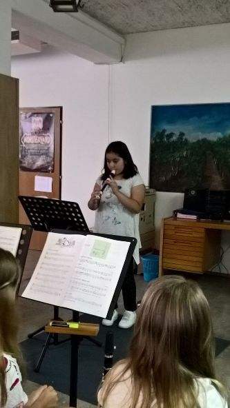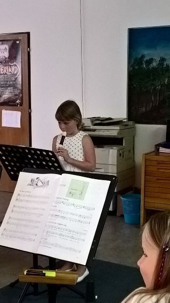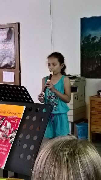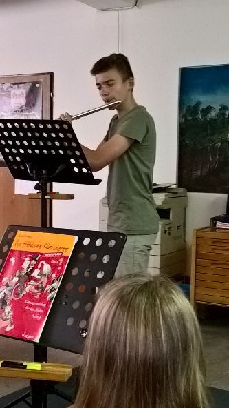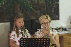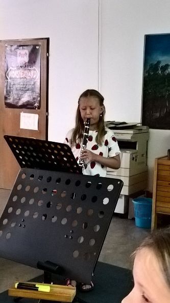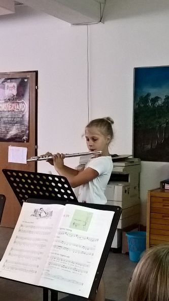 Das kleine feine Konzert der Kinder fand am 23. Juni im Probelokal des Spielmannszuges statt. Einerseits ist das die Gelegenheit für die FlötenKids einmal vor Publikum zu spielen und andererseits wollten wir auch unseren Musikschulkindern die Möglichkeit bieten, zu zeigen, was sie schon drauf haben. Die musikalische Reise begannen die FlötenKids mit der Blockflöte, gemeinsame Stücke aber auch Solis wurden vorgetragen. Ein Stück von Tristan auf der kleinen Trommel sorgte für Abwechslung und auch Alex, unser junger Spitzenflötist, zeigte den Kleinen, was man nach vielen Übungseinheiten auf der Querflöte spielen kann! Lucia auf der Klarinette, Vivian und Julia auf der Querflöte und auch Theresa mit ihrer Trompete trugen ein Stück vor. Das Publikum war begeistert und als Belohnung gab es nachher für alle ein Eis!