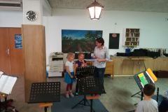 Das Konzert der Kinder ist beim Spielmannszug inzwischen etabliert. Die FlötenKids üben das ganze Jahr, beim Abschlusskonzert dürfen sie das Gelernte vorführen. Auch alle Kinder die bereits in die Musikschule gehen, konnten sich auf der Bühne im Proberaum des Spielmannszuges präsentieren. Mit ein paar Geschichten von Julia zwischen den Stücken und der Moderation von Bianca war das ca. 45-minütige Konzert eine kurzweilige Veranstaltung.