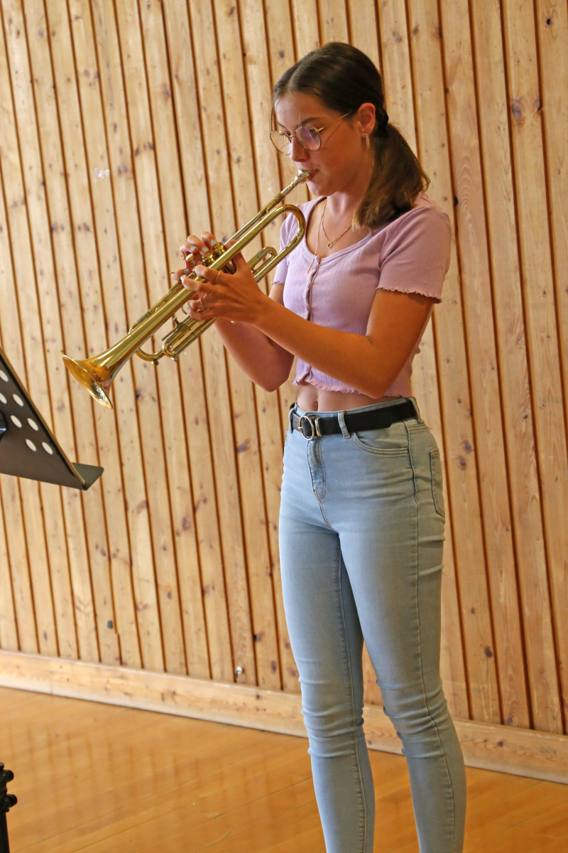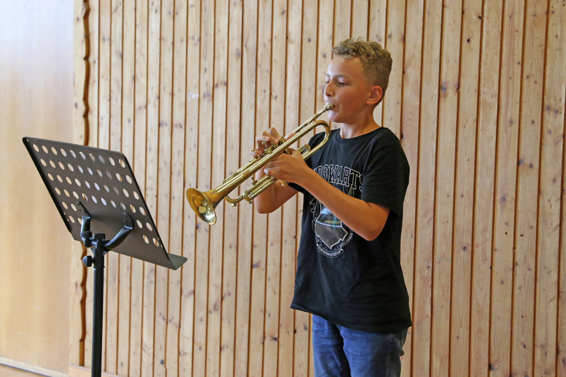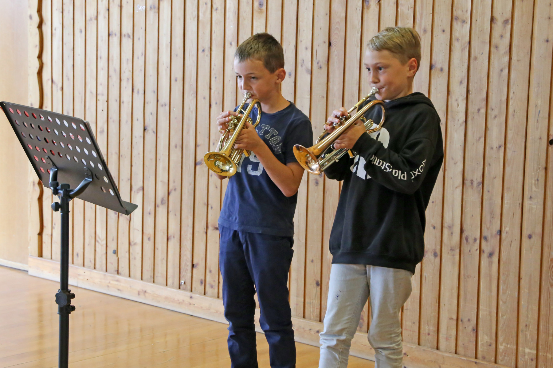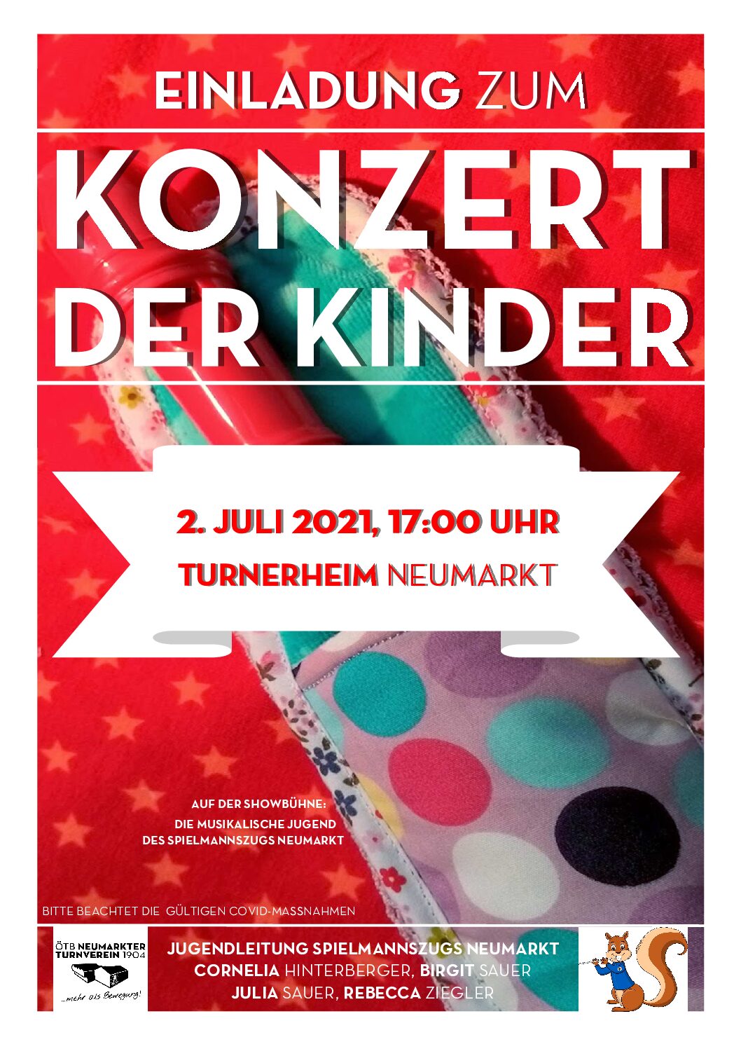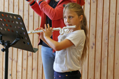 „Ohne Musik wär‘ alles nichts“, das wusste bereits Mozart. In den letzten Monaten mussten auch die (Jung-)MusikerInnen des Spielmannszugs Neumarkt feststellen: Ohne Musik war wirklich alles nichts oder zumindest viel weniger. In ganz Österreich verstummten Musikvereine und Chöre, Instrumente verstaubten, die Probenarbeit pausierte und Auftrittsmöglichkeiten entfielen. Das traf besonders alle NachwuchsmusikerInnen, die ansonsten bei diversen Vortragsabenden und kleinen Konzerten ihre Fortschritte unter Beweis hätten stellen können. Um das zu ändern, veranstaltete das Jugendteam des Spielmannszugs Neumarkt (bestehend aus Cornelia Hinterberger, Rebecca Ziegler, Birgit Sauer und Julia Sauer) am 2. Juli 2021 im Turnerheim Neumarkt ein Konzert nur für die Nachwuchstalente. Insgesamt 14 Kinder ließen sich diese Chance nicht entgehen und zeigten beim „Konzert der Kinder“, was sie drauf hatten. Und das war ganz schön viel! Insgesamt zwölf von den Kindern selbst einstudierte Programmpunkte wurden aufgeführt und alleine oder im Duett vorgetragen. Zu den Klängen von Klarinette, Querflöte, Blockflöte, Trompete, Tenorhorn und Schlagzeug verbrachten die NachwuchsmusikerInnen gemeinsam mit ihren „Fanclubs“ und einigen bereits aktiven MusikerInnen des Spielmannszugs einen gemütlichen Freitagabend, der mit Bratwürsteln, Eis und dem ein oder anderen kühlen Getränk abgerundet wurde.