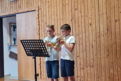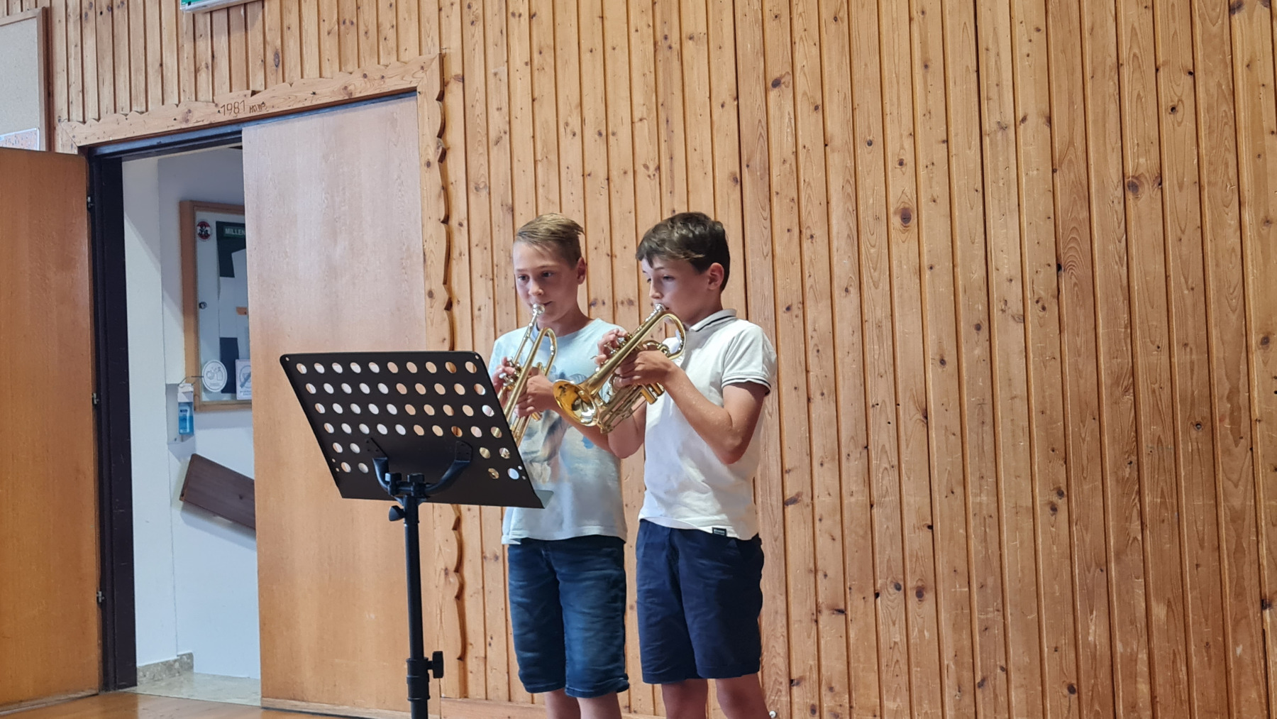 Bereits zum zweiten Mal hieß es am 24. Juni 2022 um 16:00 Uhr im Turnerheim: Bühne frei für die musikalische Zukunft des Spielmannszugs! Auch heuer hatten die NachwuchsmusikerInnen wieder die Möglichkeit, ihr Können vor einem kleinen, aber feinen Publikum unter Beweis zu stellen. Insgesamt 16 Kinder und Jugendliche nutzten diese Chance und musizierten auf der Blockflöte, der Trompete, dem Tenorhorn, der Querflöte, der Klarinette oder dem Schlagzeug. Souverän und mit sichtlicher Freude präsentierten die JungmusikerInnen eine Bandbreite an Liedern, entweder als Solo oder als Duett. Und das Publikum war begeistert! Im Anschluss an das Konzert gab es Würstel und Getränke und für die fleißigen MusikerInnen ein Eis – Herz, was willst du mehr?