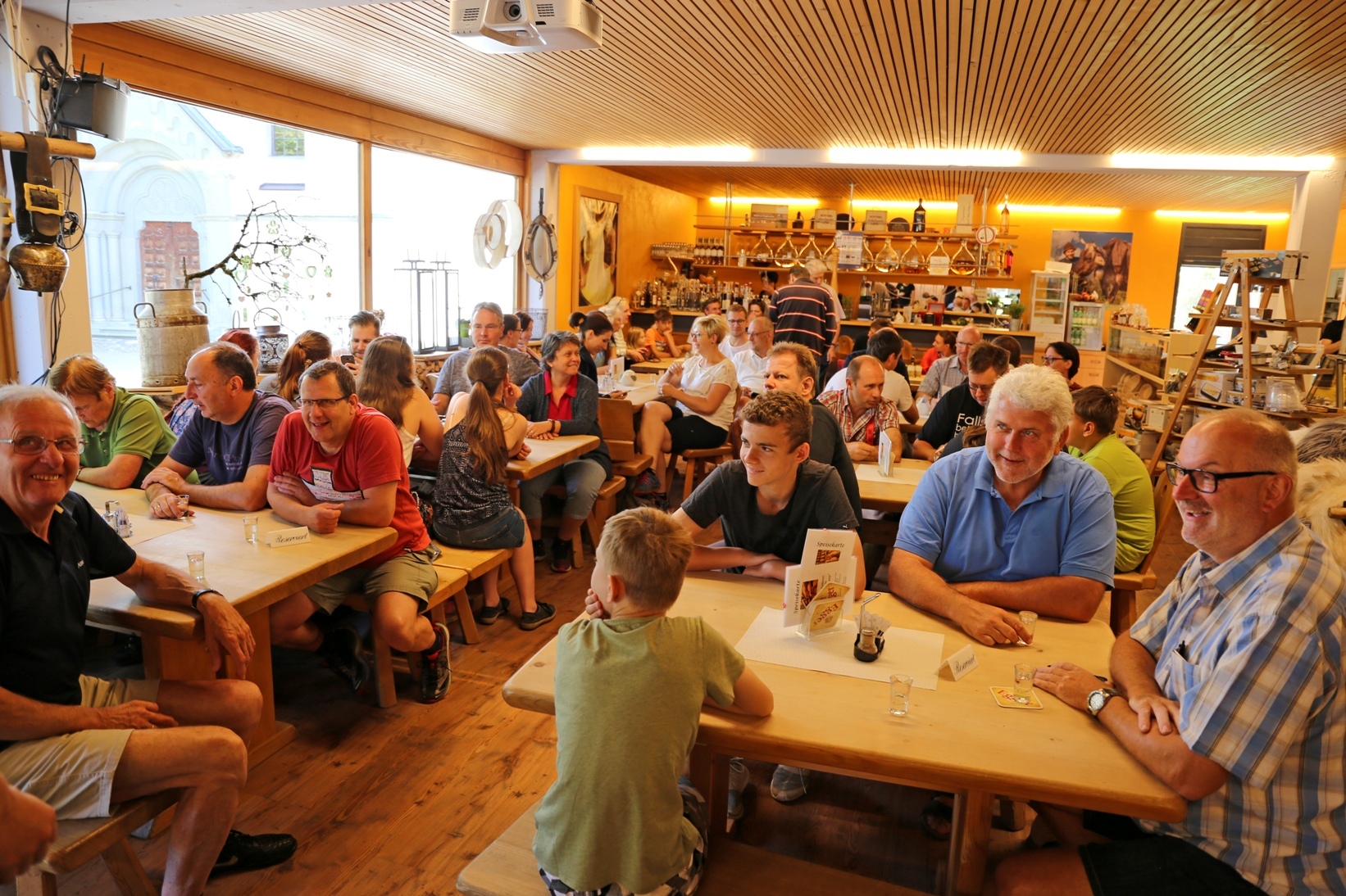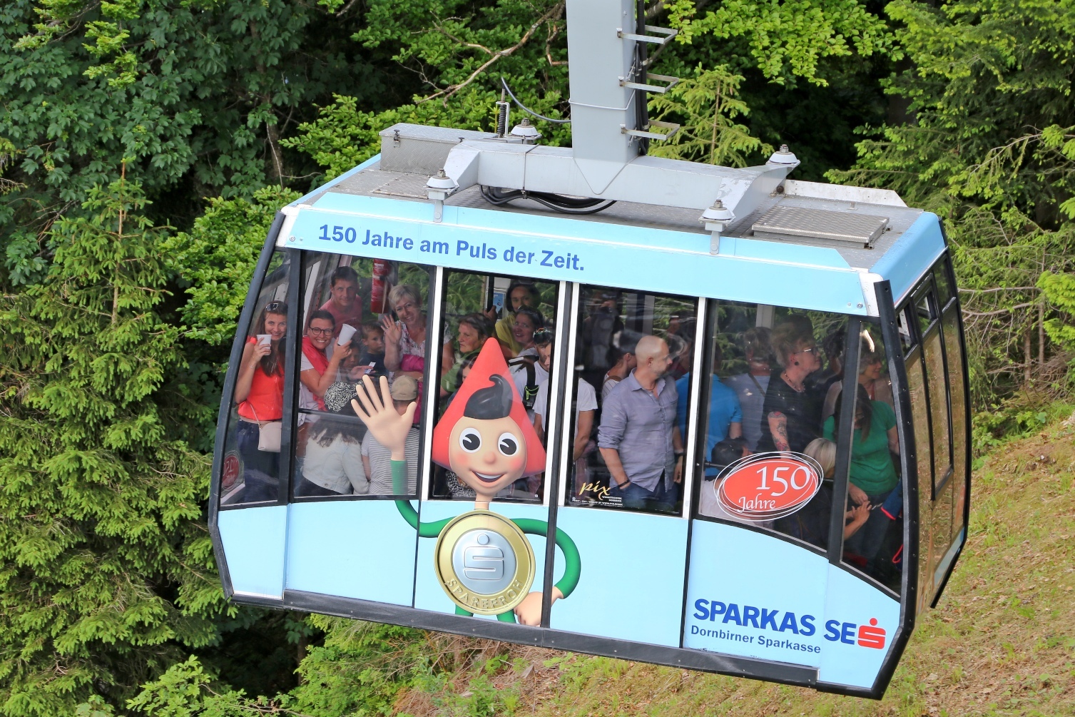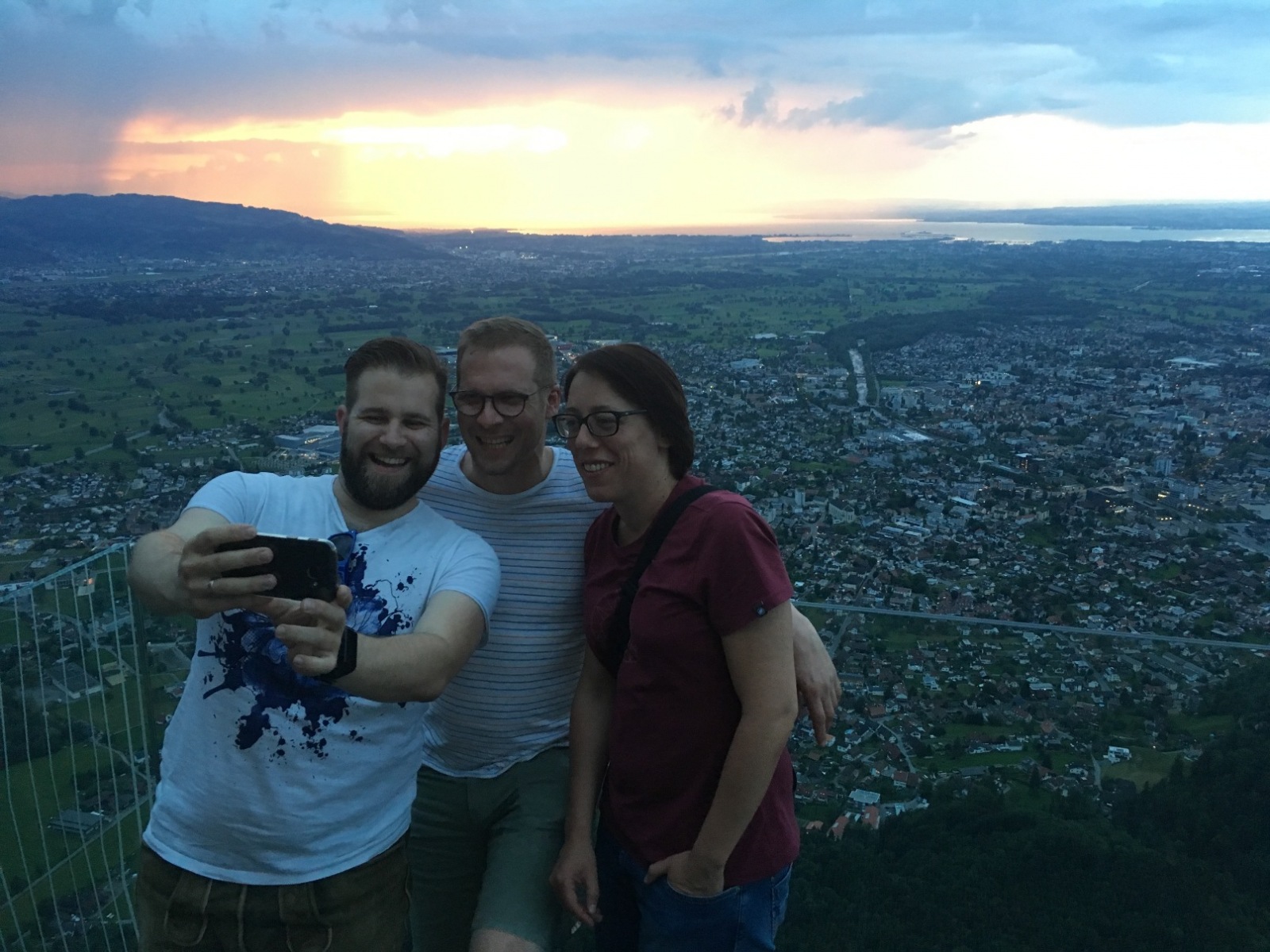 Der zweite Tag stand unter dem Motto Käse und Berge. Vormittags wurde im Käsehaus Bregenzerwald beim Schaukäsen zugesehen, anschließend ging es zur Rappenlochschlucht einer beeindruckenden Schlucht mit nettem See am Ende. Am späten Nachmittag ging die Reise weiter nach Dornbirn, um dort ein Platzkonzert am Marktplatz zu geben. Nach dem Konzert machten wir uns auf dem Weg zum Karren, dem Dornbirner Hausberg. Das Panoramarestaurant am Karren hat seinen Namen wirklich verdient, ein umwerfender Ausblick ergibt sich von hier über das ganze Ländle, den Bodensee bis in die Schweiz.