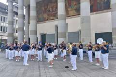 Eine weite Busreise nach Bregenz nahmen der Spielmannszug heuer auf sich, doch Busfahren ist für echte Spielleute kein Problem. Früh morgens ging die Reise los, nachdem alle Instrumente, das ganze Gepäck und etwas flüssiger Reiseproviant im Bus gerade noch verstaut werden konnte. Am frühen Nachmittag erreichte die Reisegruppe den Schwangau und nach Lust und Laune wurde Schloss Neuschwanstein, Schloss Hohenschwangau und die örtliche Gastronomie besucht. Nach zwei Stunden Pause ging es weiter nach Bregen ins JUFA Hotel Bregenz, Abendessen, Seebühne und die Stadt erkunden.
