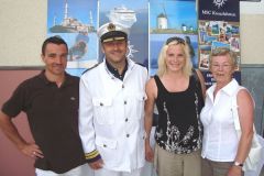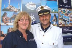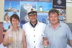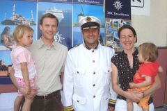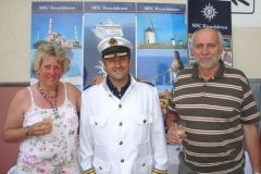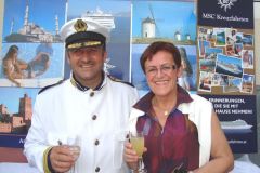 Dann war wieder eine kurze Pause angesagt, da unsere Se Oritschinel Goatnzauns erst aufbauen mussten. Sie beeilten sich aber und nach 10 Minuten konnte der 3. Teil dieses Abends beginnen. Da auch die SOG am Schiff in der berühmten Shaker Lounge ein Konzert gaben, gehörten sie auch zu diesem Abend dazu und die Stimmung stieg natürlich nochmals ein wenig an. Nach 5 Stücken inkl. Zugabe war aber Schluss, es sollte ja in kein Konzert ausarten und sofort wurden die Lichter im Saal abgedreht. Unter der Traumschiffmelodie marschierten dann ca. 20 Spielleute mit Spritzkerzen ein, gingen durch den Saal und stellten auf jeden Tisch einen großen Teller voller Mehlspeisen, die natürlich von unseren Spielleuten gebacken wurden. Das war ein würdiger Abschluss und alle Gäste freuten sich nochmals über die nette Geste. Gerald ging noch einmal ans Rednerpult, bedankte sich für das Kommen und wies auf 2 Dinge hin. Zum Einen auf die bereits geplante Kreuzfahrt im Mai 2009 ins östliche Mittelmeer mit der MSC Musica und auf die Dokumentationskuverts, die am Anschluss jeder Kreuzfahrer bekam – Inhalt: