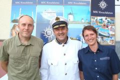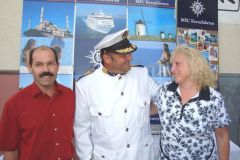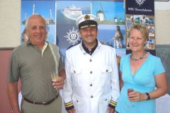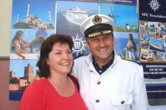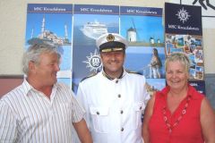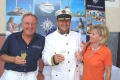 Die Spielleute verließen mit ihren Notenständern die Bühne, die Sesseln wurden nach hinten gestellt, die Leinwand richtig platziert und Gerald moderierte den Höhepunkt dieser Kreuzfahrt-Dokumentation an, den Film von HT1, der dann 50 min. lang präsentiert wurde. Dieser Film wurde in unzähligen Stunden von einem der beiden Chefs von HT1, die auf der Reise mit waren, nämlich von Gerald Schlager aus knapp 10 Stunden Filmmaterial zusammengeschnitten. Jeder Spielmann bekam dann anschließend im Dokumentationskuvert diesen Film gratis und viele Kreuzfahrtgäste hatten sich diesen Film auch um 20,– Euro bestellt – er war bei ihnen ebenfalls im Kuvert. Weiters lief dieser Film ab heute täglich um 20.00 und 21.00 Uhr auf HT1 eine ganze Woche lang. Der Film ist besonders gelungen, nämlich mit vielen Ideen, vielen Teilnehmer-Interviews und super Eindrücke der angelaufenen Städte.