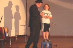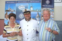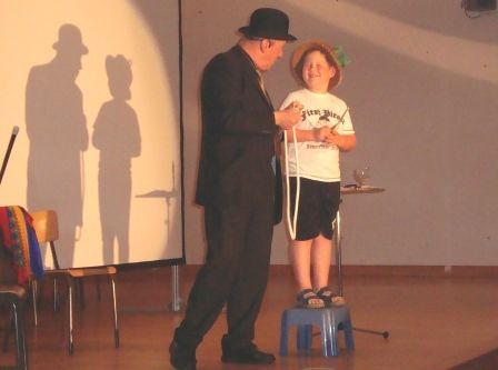 Es folgte anschließend eine kurze Pause von ca. 15 Minuten, die zum Servieren benötigt wurde, da es während des Abends nichts gab, damit auch unsere Teilnehmer und Arbeitsbienen diesen Abend genießen konnten. Mit der Ansage des nächsten Programmpunktes des Kreuzfahrtdirektors Schera in fünf Sprachen ging es weiter. Er präsentierte den Showteil des heutigen Abends, den Zauberer Houdini aus Gallspach, der ca. 25 Min. ganz nette Kunststücke präsentierte. Während der Ansage kam Zechmeister Gabriele auf die Bühne, unterbrach den Direktor Schera und bedankte sich im Namen der gesamten Kreuzfahrer bei ihm und der 2. Reisebegleiterin Bianca mit einem Wastl von Karl Moik für die geleistete Arbeit. Warum Karl Moik ins Spiel gebracht wurde, wussten nur einige wenige Teilnehmer, denn so wurde Gerald am Schiff getauft, da er die Moderation des Spielmannszuges in mehreren Sprachen übernahm!!!!