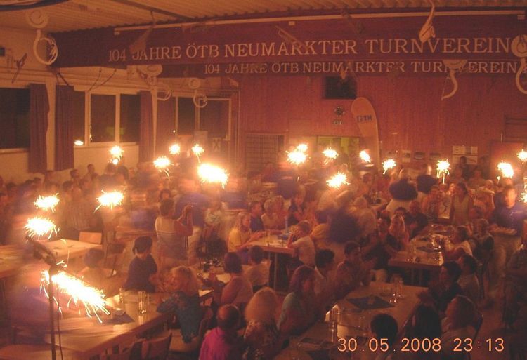 Nach der großen Aufregung und Freude über diese Sachen wurde natürlich noch lange im Saal diskutiert und gesprochen und auch die Shaker Lounge im Gastzimmer unter der bewährten Führung unseres Top-Barmixers Weigi sperrte auf. Bis 01.00 Uhr blieben die Gäste im Saal und wurden dann ins Gastzimmer ersucht, damit wir die komplette Halle in 1 Stunde und 15 Minuten ausräumen konnten – inkl. Deckengestaltung (Musikinstrumente aus Karton) und Stoffbahnen auf der Bühne. Dann genehmigten auch wir uns noch einige Caipirinhas in der Shaker Lounge und gegen 03.40 Uhr gingen die meisten nach Hause. Letzte Sperrstunde am runden Tisch unter der Leitung unserer Wirtin Pauline – die zwischenzeitlich schon zu Hause war – war dann um 04.30 Uhr.