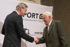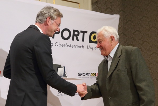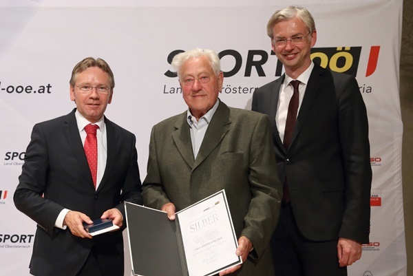 Ehrenmitglied Johann Gföllner erhielt das Landessportehrenzeichen in Silber von LR Dr. Michael Strugl überreicht.