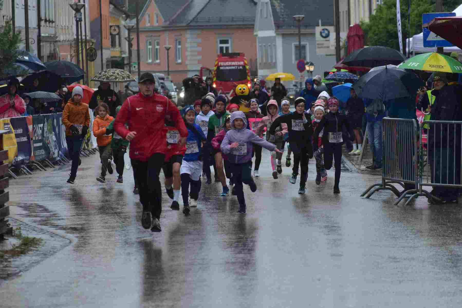 „Ich bin beeindruckt, dass sich Läufer von schlechten Witterungsbedingungen nicht abhalten lassen. Mit 273 angemeldeten und letztendlich 236 gestarteten Läufern sind wir mit der Teilnehmerzahl sehr zufrieden!“ freut sich Chef-Organisator Patrick Ruttinger. Auf den großen Zusammenhalt in der Gemeinde Neumarkt weist Obmann Dr. Gernot Lehner hin: „Bei dem schlechten Wetter mussten wir den Läuferbereich und die Siegerehrung der Kinder spontan ins Pfarrheim verlegen, die Siegerehrung der Erwachsenen fand im Festzelt der Feuerwehr statt, die am Abend ihr 150jähriges Jubiläum feierte. Egal ob Pfarre oder Feuerwehr, die Hilfsbereitschaft und der Zusammenhalt unter den Vereinen und Organisationen in Neumarkt funktioniert bestens.“