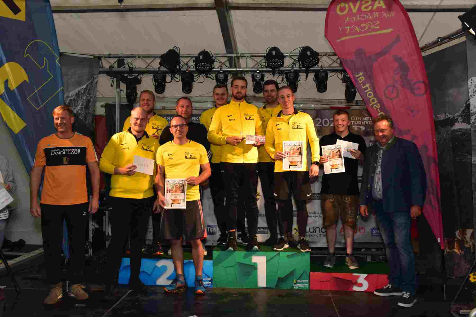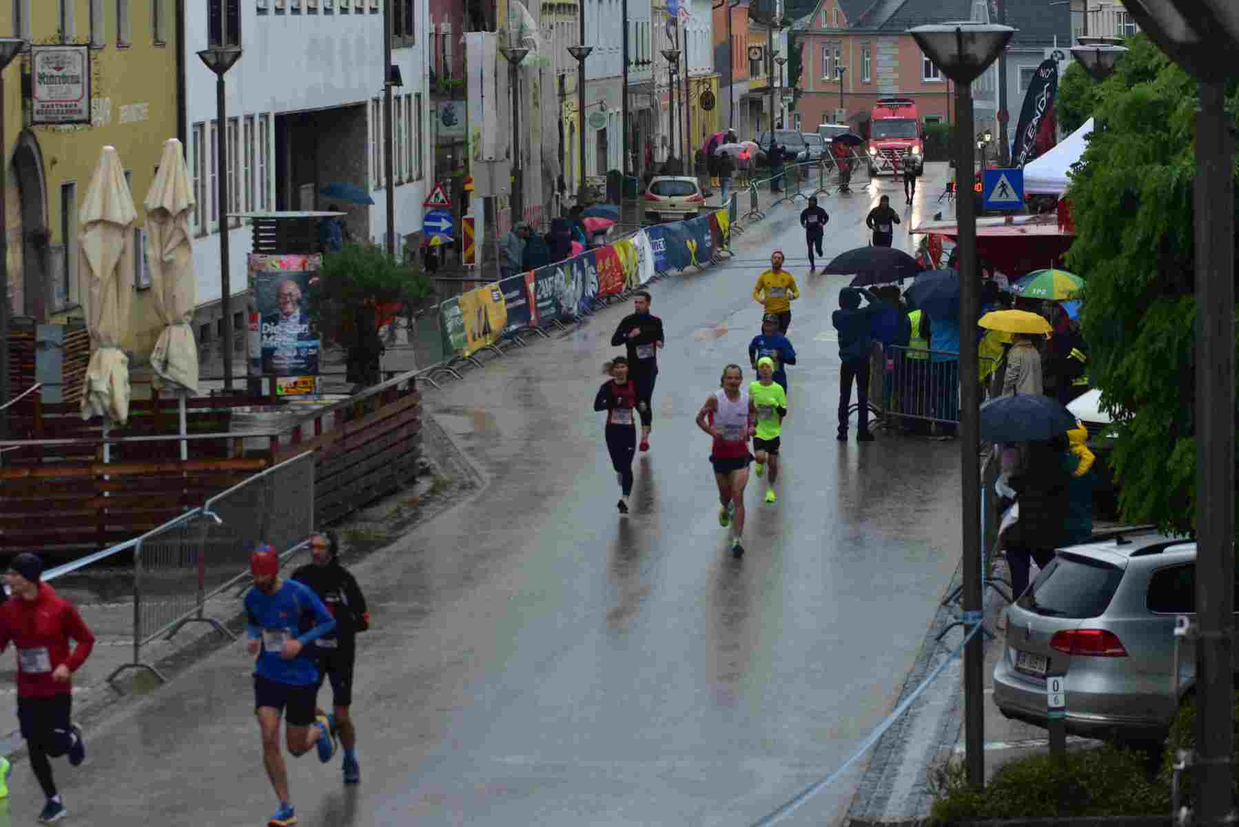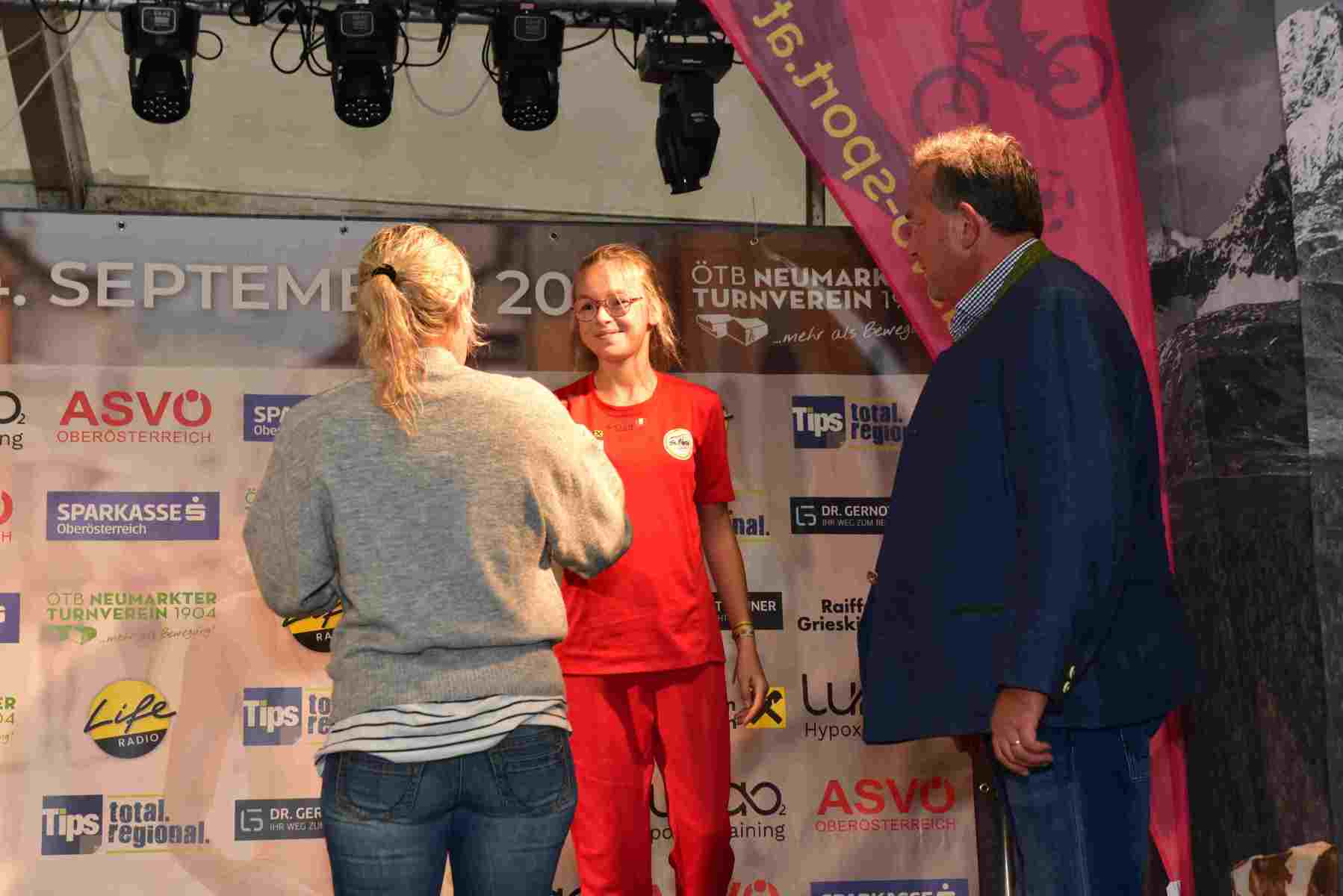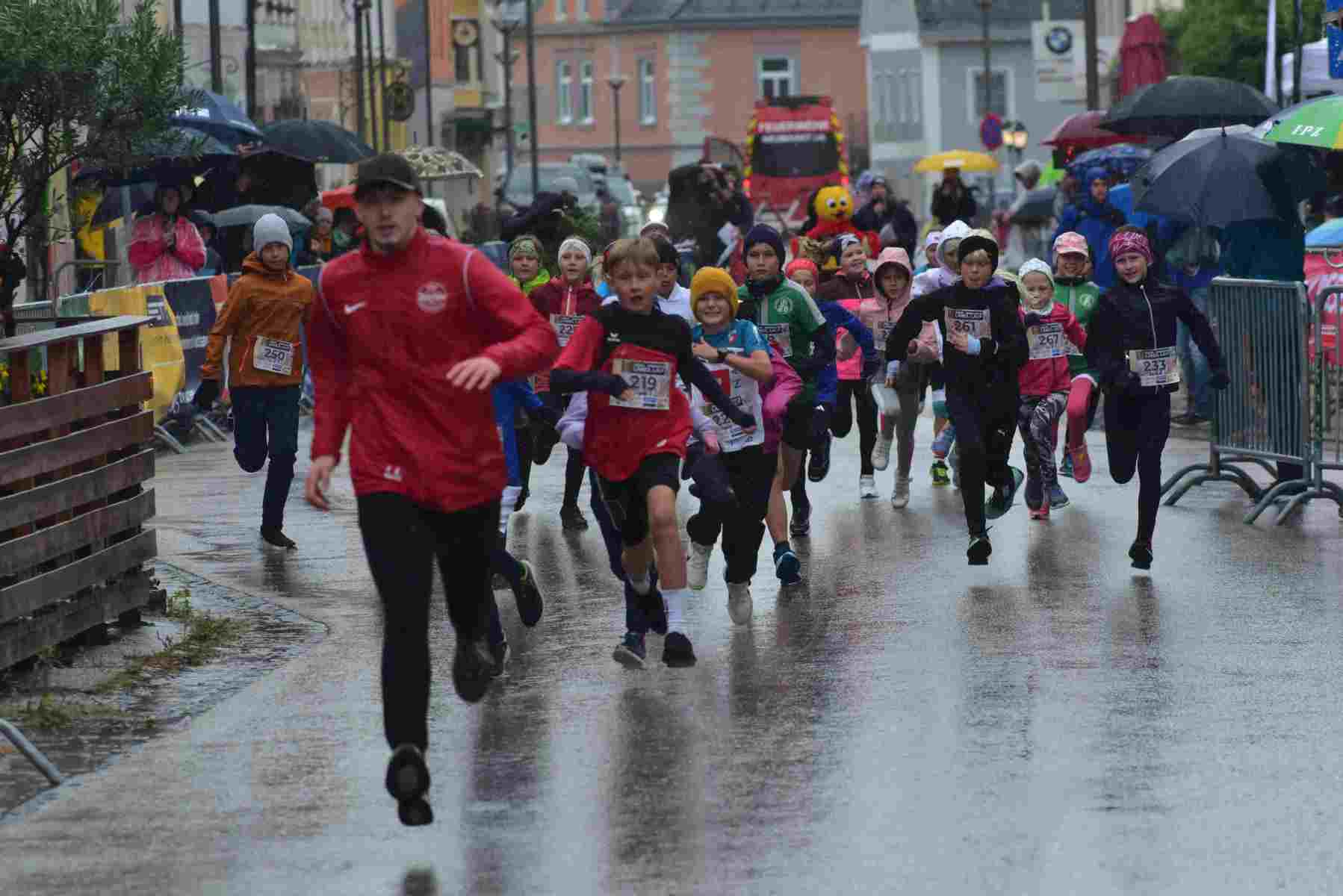 Mit einem Laufbewerb für ALLE beschenkte sich der ÖTB Neumarkter Turnverein 1904 zum 120jährigen Vereinsjubiläum am 14. September selbst! Zum ersten Mal fand in Neumarkt/H. ein 5 km Laufbewerb statt, bei dem fünf Runden um den Neumarkter Marktplatz im Volkslauf zu absolvieren waren. Geplant war freilich, dass im Start/Zielbereich am Marktplatz Volksfeststimmung herrscht, dass die Fans in den zahlreichen Gastgärten in der Sonne sitzen und die Läufer lautstark anfeuern. Geworden ist es ein Regenrennen und die Gastgärten waren geschlossen. Die Fans jedoch gaben trotz Regens und Windes ihr Bestes und trieben die Läufer Runde um Runde zu Bestleistungen an.