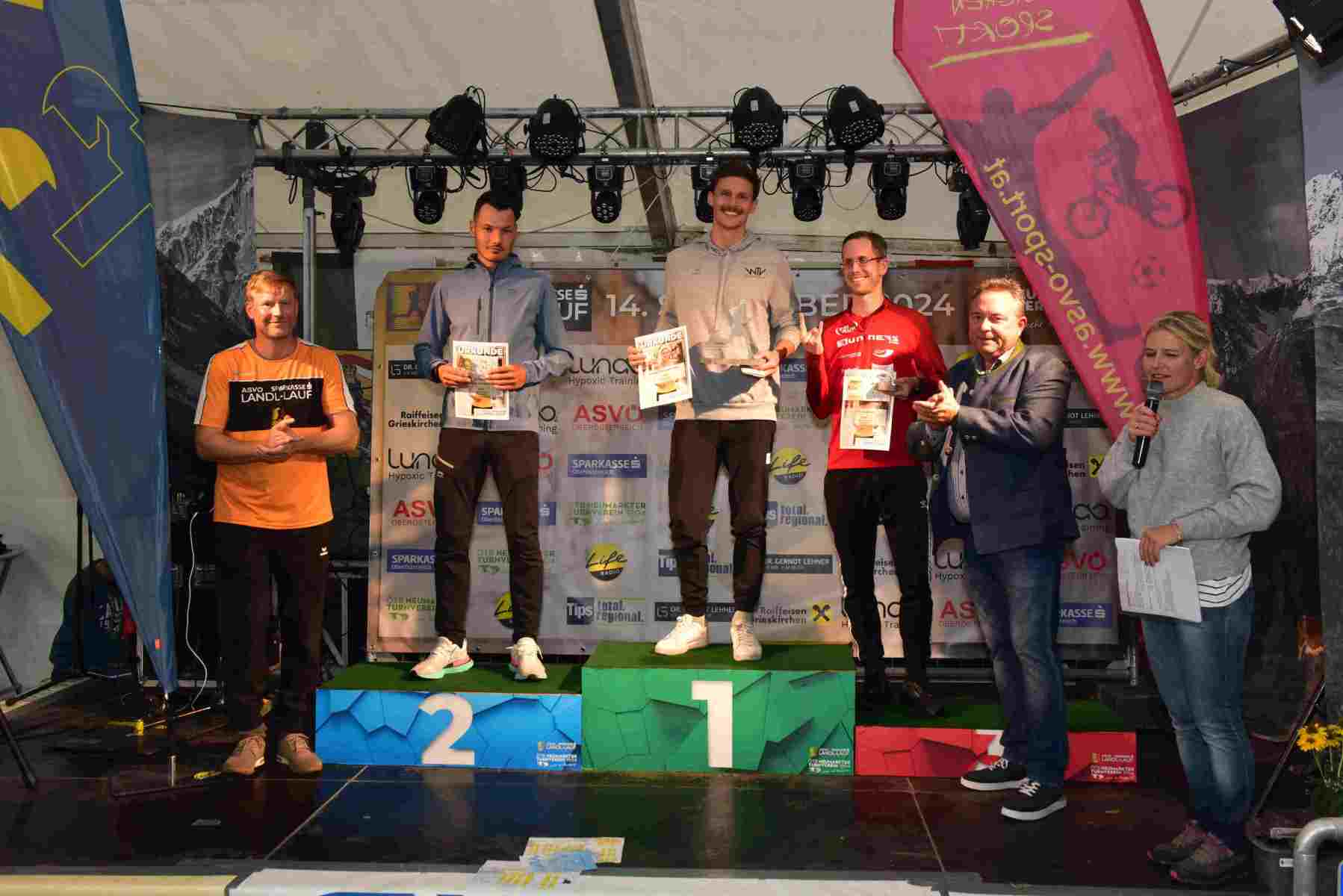 Aufgrund zahlreicher Absagen anderer Rennen, wie z. B. dem Wachaumarathon, wuchs das Teilnehmerfeld in den letzten Tagen noch kräftig an, denn Läufer suchten ein Ersatzprogramm. Die Siegerzeiten und somit der neue und erste Streckenrekord können sich sehen lassen! Mit einer beeindruckenden Siegerzeit von 15:50 Min. darf sich Lukas Meindlhumer vom Welser Turnverein als Erster in die ewige Bestenliste eintragen. Bei den Damen kam Jasmin Vormair von der LAG Ried mit 20:25 Min. als schnellste Läuferin ins Ziel.